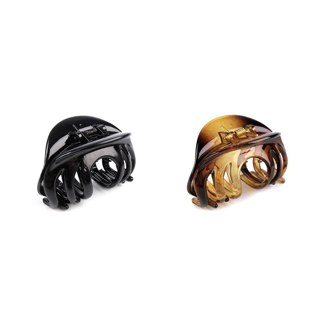 Mittelgroße Haarklammer aus Kunststoff , erhältlich in zwei Farben. Leicht, schonend zu Haut und Kopfhaar. Fester Halt. Größe 45 x 75mm.