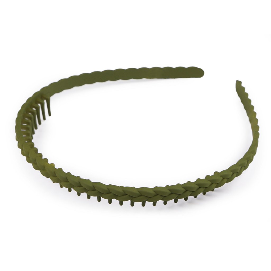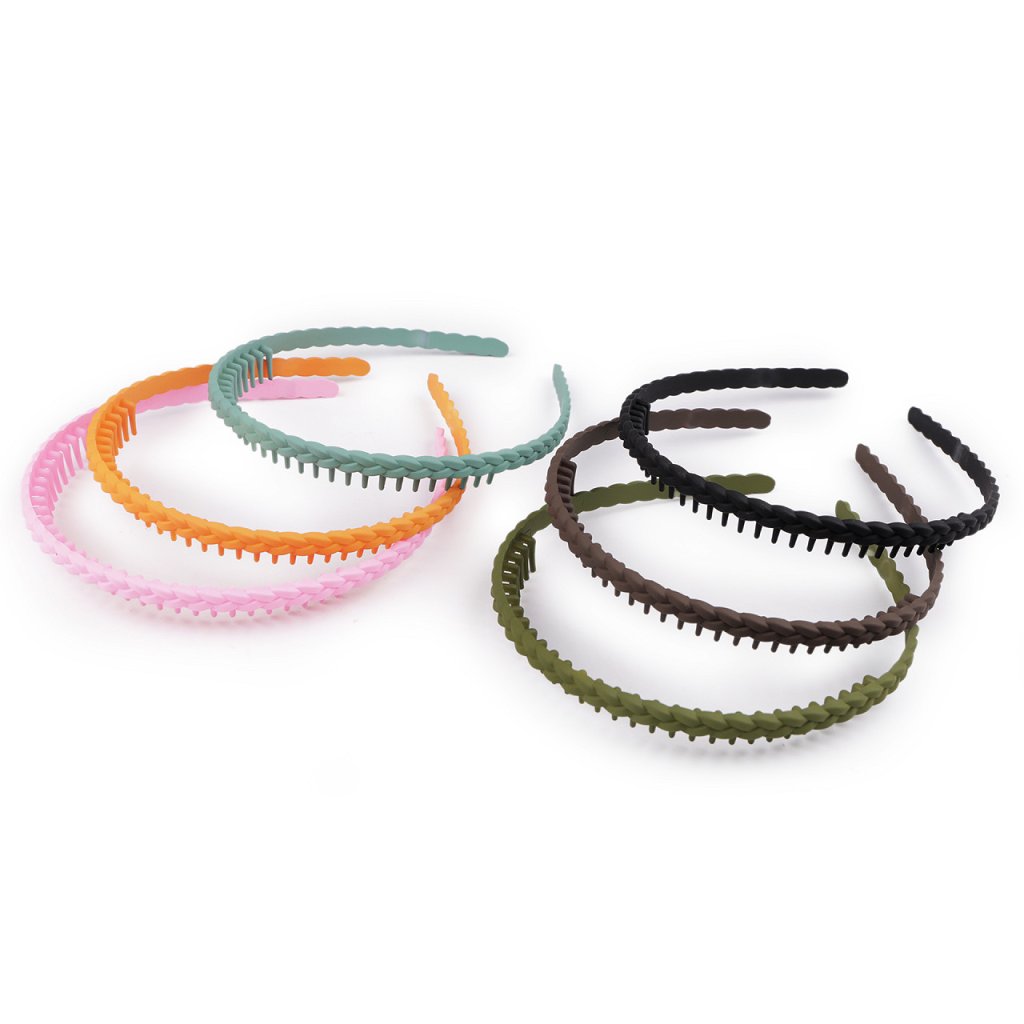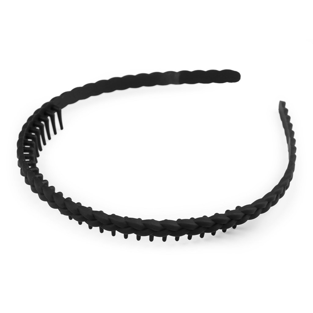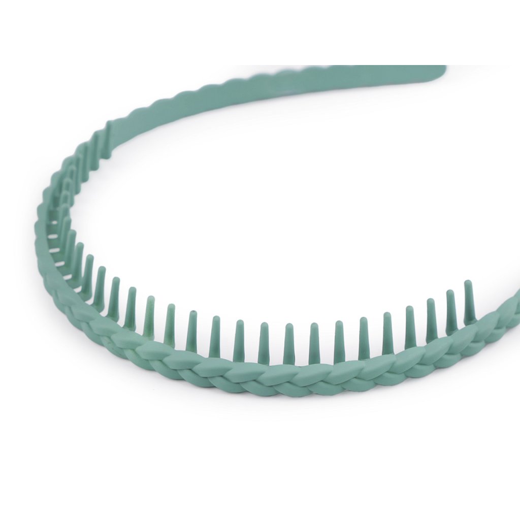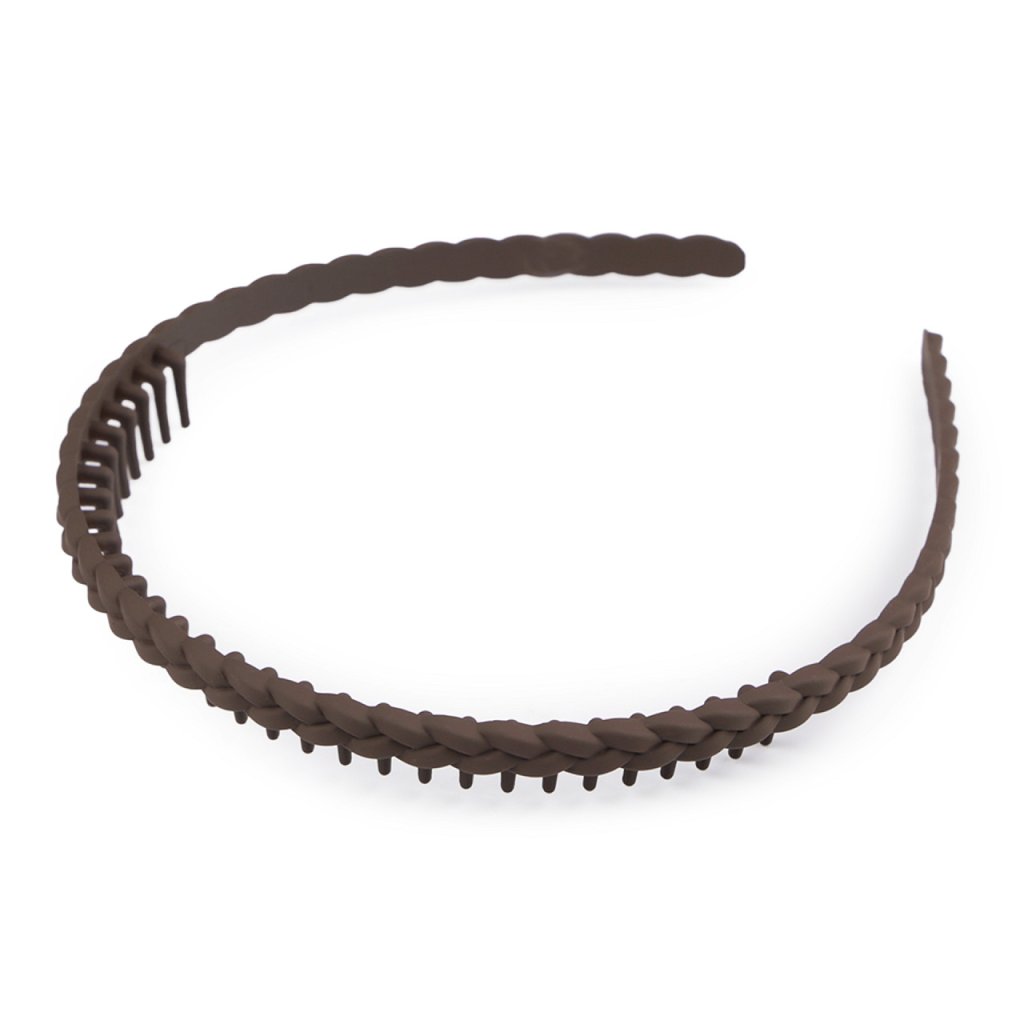 Das Kunststoffstirnband mit Kamm hat ein Zopfdesign . Geeignet sowohl für Erwachsene als auch für Kinder. Seine Oberfläche ist matt. Das Stirnband ist sehr angenehm zu tragen , dank des Kamms mit mittellangen Zähnen hält es perfekt .