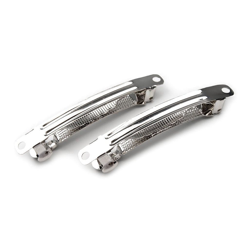 Französische Haarspange hergestellt aus Bijouteriemetall von guter Qualität hält in der Frisur sehr gut. Geeignet als Rohling zum weiteren Verzieren mit verschiedenen Perlen, die man an dünnen Draht einfädelt. Danach wird die Haarspange mit dem Draht umgewickelt, wodurch entsprechende Form entsteht. Die obere Seite ist an den Rändern mit kleinem Loch - Durchmesser 2,8 mm - versehen, die Löcher sind zum Befestigen der Verzierung bestimmt. Der Teil für die Haare ist 4 cm lang.