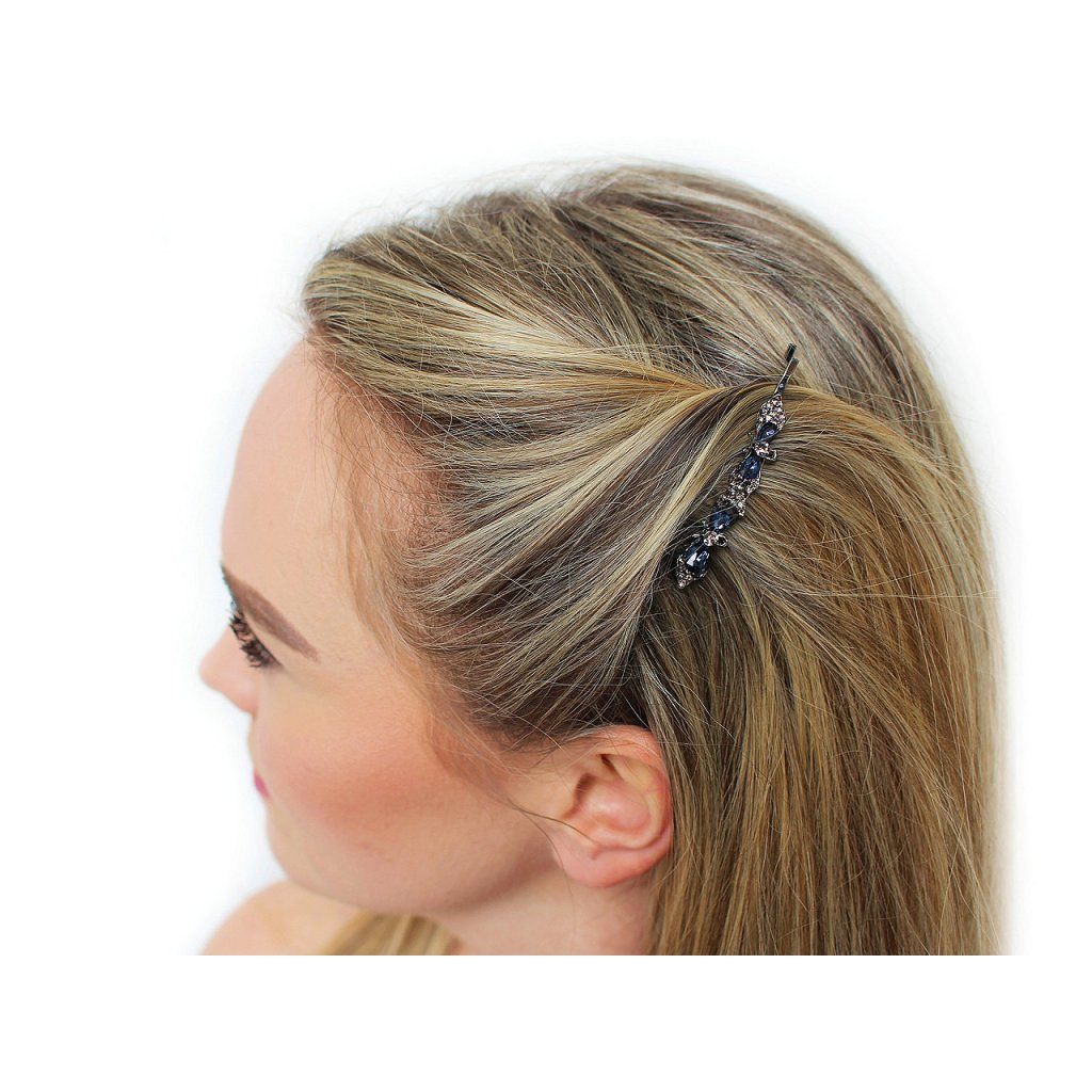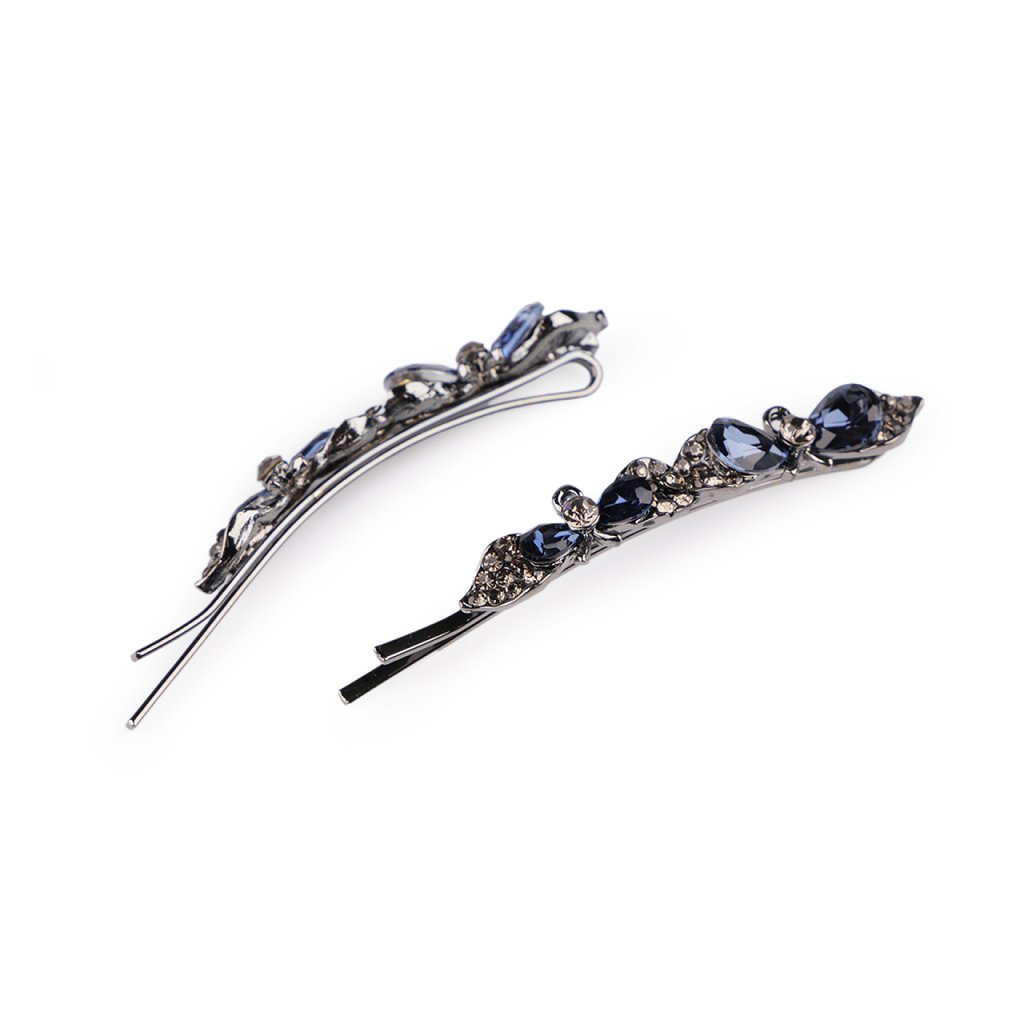 Elegante Haarspangen sind mit glänzenden, geschliffenen Steinen verziert. Sie bestehen aus hochwertigem Juweliermetall und halten gut im Haar. Sie eignen sich für verschiedene gesellschaftliche Anlässe, aber auch für den Alltag schmücken sie Ihre Frisur dezent. Auf einer Karte befinden sich 2 Clips . Die Karte eignet sich zum Aufhängen an einem Verkaufsständer.
