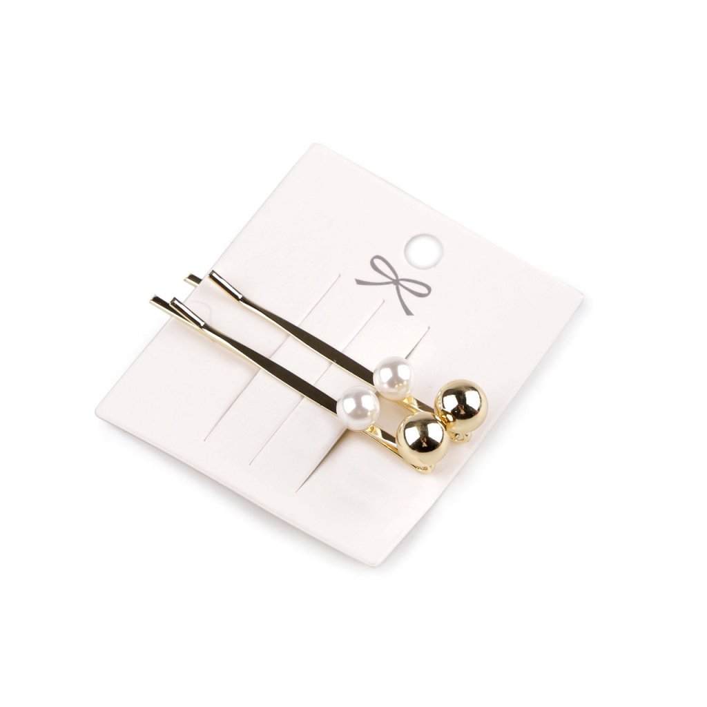 Elegante Haarspangen sind mit glänzenden Kugeln und Perlen verziert. Sie beeindrucken durch ihr minimalistisches und geschmackvolles Design. Sie sind aus hochwertigem Juweliermetall gefertigt und halten gut im Haar. Sie eignen sich für verschiedene gesellschaftliche Anlässe, aber auch für den Alltag schmücken sie Ihre Frisur dezent. Der Durchmesser der Kugel beträgt 10 mm, der Durchmesser der Perle 8 mm. Auf einer Karte befinden sich 2 Clips . Die Karte eignet sich zum Aufhängen an einem Verkaufsständer.