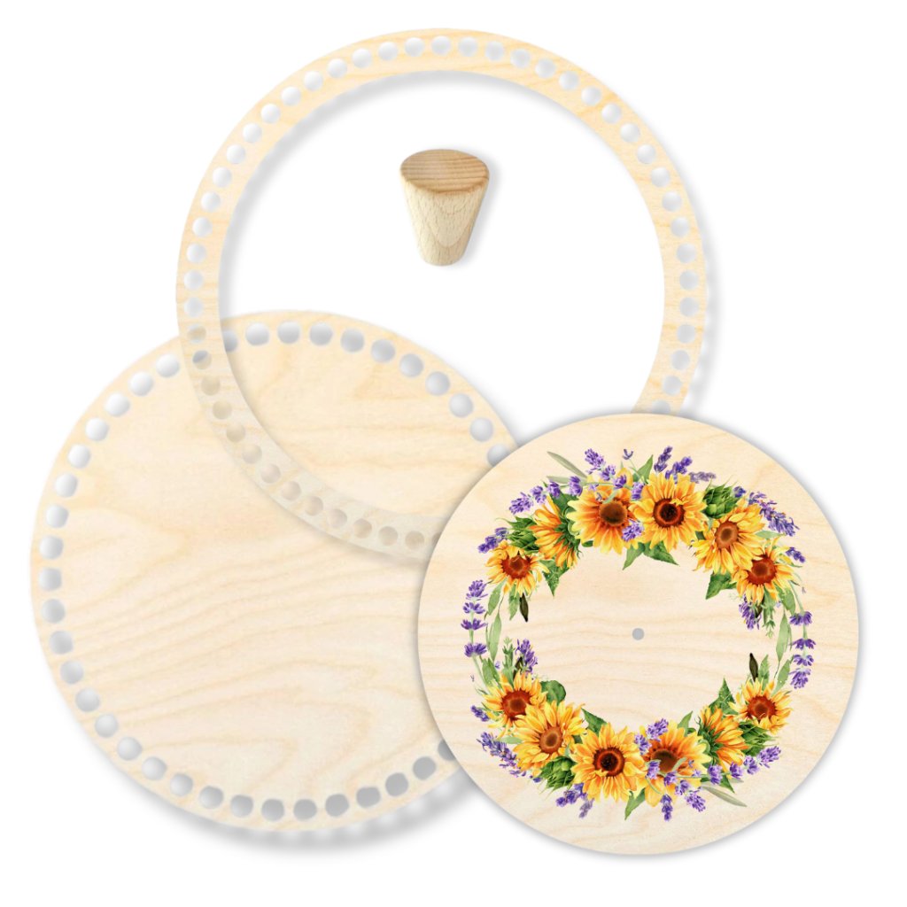 Häkelkörbe mit Ring und Holzdeckel, 25 cm, Sonnenblume