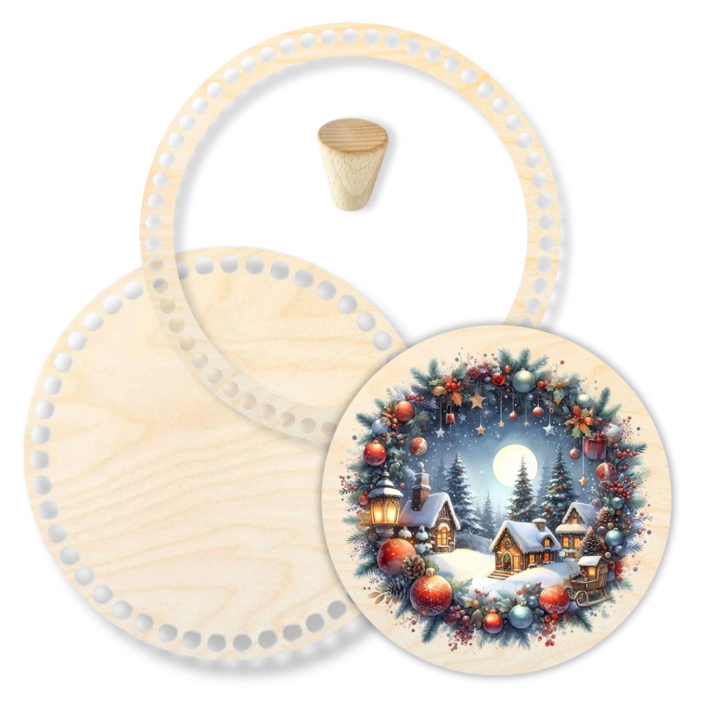 Häkelkörbe mit Ring und Holzdeckel, 25 cm, Weihnachten