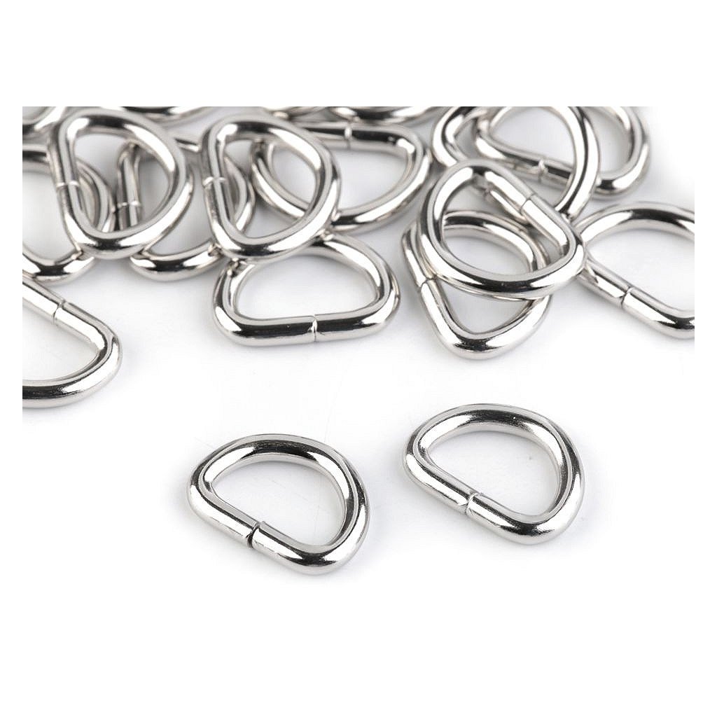 Kleiner Halbring aus Metall zum Befestigen des Gurtes oder Handgriffes zur Tasche oder Clutch. Auch für Herstellung von Halsbändern gut geeignet. In der Verbindungsstelle ist er nicht geschweißt.