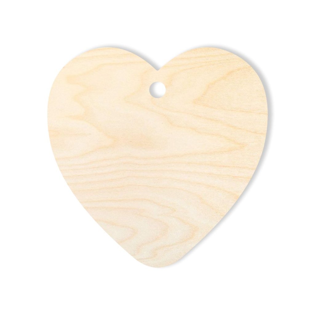Holzherz in der Größe 4 x 4 cm mit Loch zum Aufhängen, geschnitten aus 3 mm starkem Birkensperrholz. Preis für 1Stück