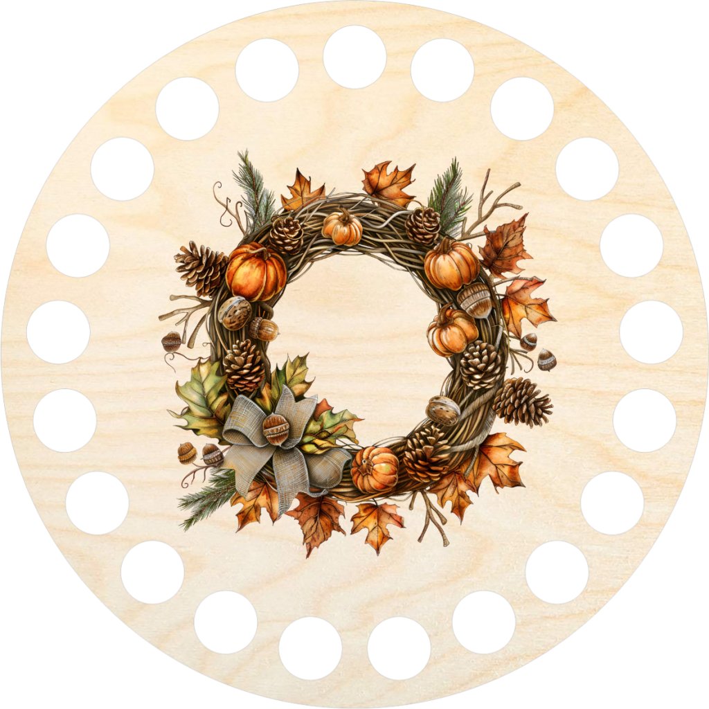 Holzboden, Deckel, Ø 10 cm, Herbstkranz