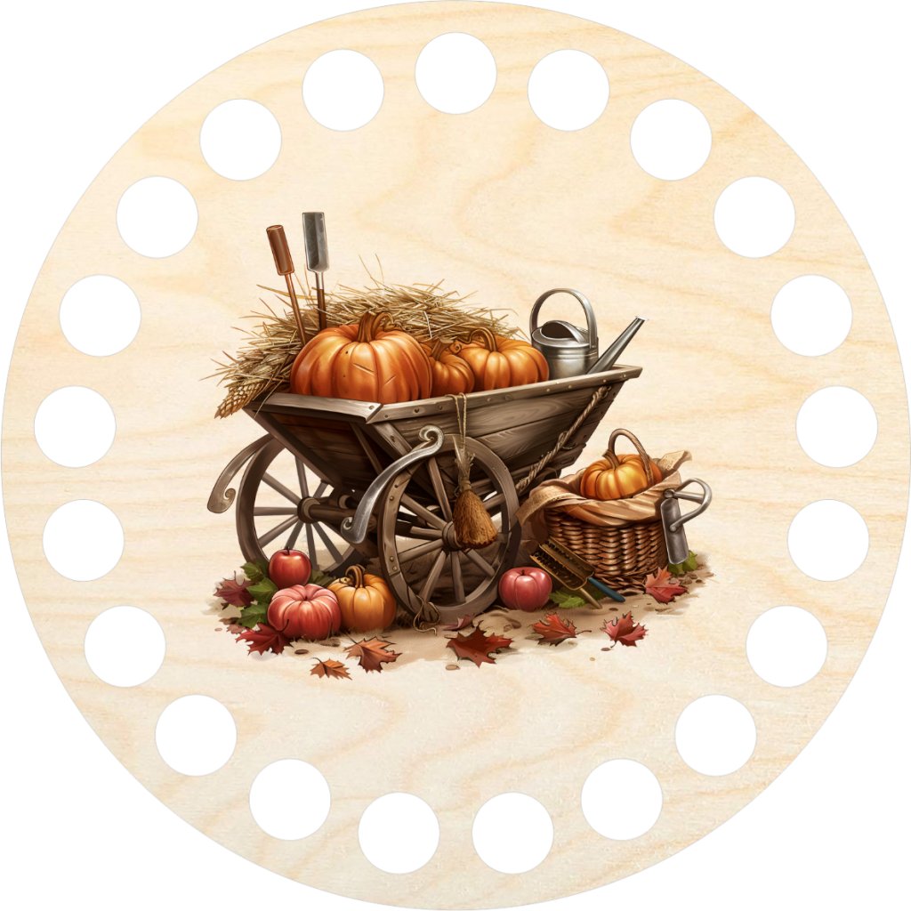 Holzboden, Deckel, Ø 10 cm, Herbstwagen