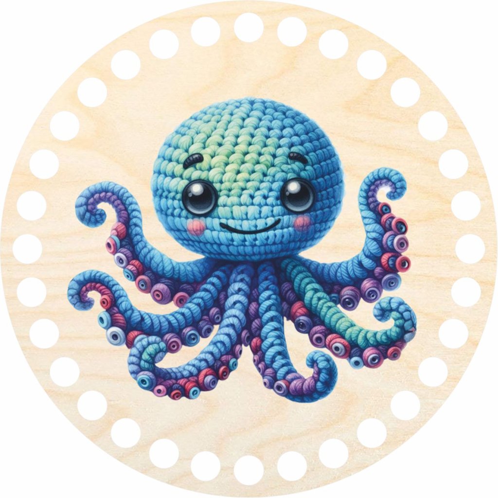 Holzboden, Deckel, Ø 15 cm, Gehäkelter Oktopus