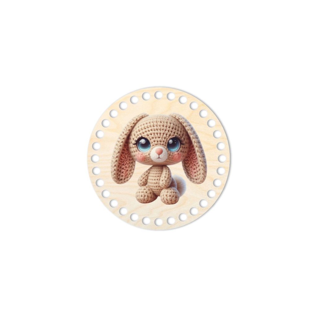 Holzboden, Deckel, Ø 15 cm, Häkelhase