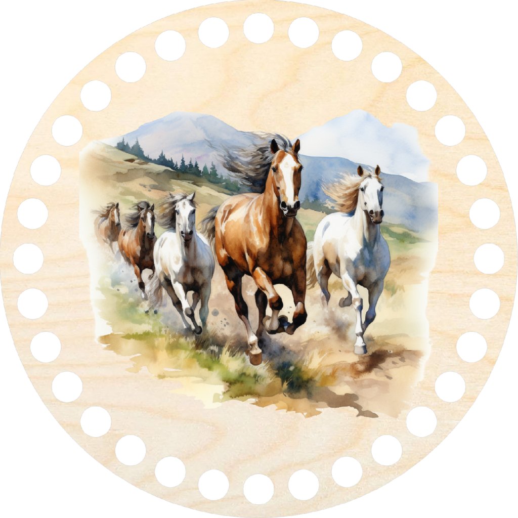 Holzboden, Deckel, Ø 15 cm, Pferdeherde