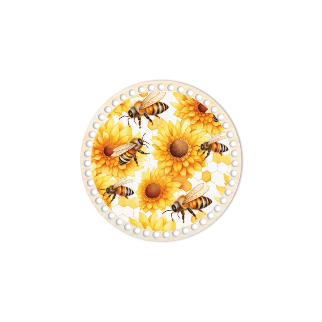 Dieser runde Holzboden aus Birken-Sperrholz mit Bienenmotiv und Sonnenblumen mit einem Durchmesser von 20 cm ist nicht nur eine solide Basis für Häkelkörbe, sondern kann auch als stilvoller Holzdeckel verwendet werden.