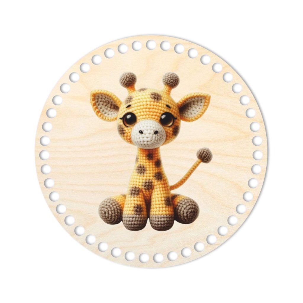 Holzboden, Deckel, Ø 20 cm, Gehäkelte Giraffe