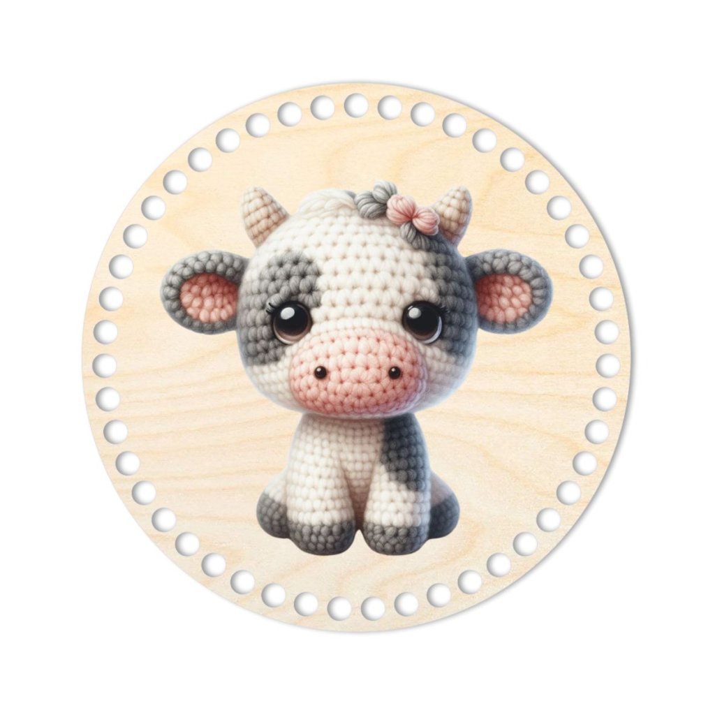 Holzboden, Deckel, Ø 20 cm, Gehäkelte Kuh