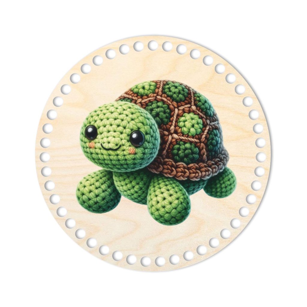 Holzboden, Deckel, Ø 20 cm, Gehäkelte Schildkröte