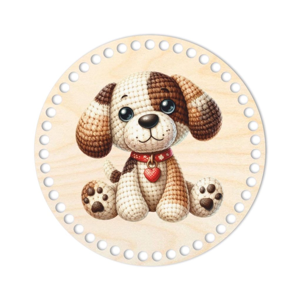 Holzboden, Deckel, Ø 20 cm, Gehäkelter Hund