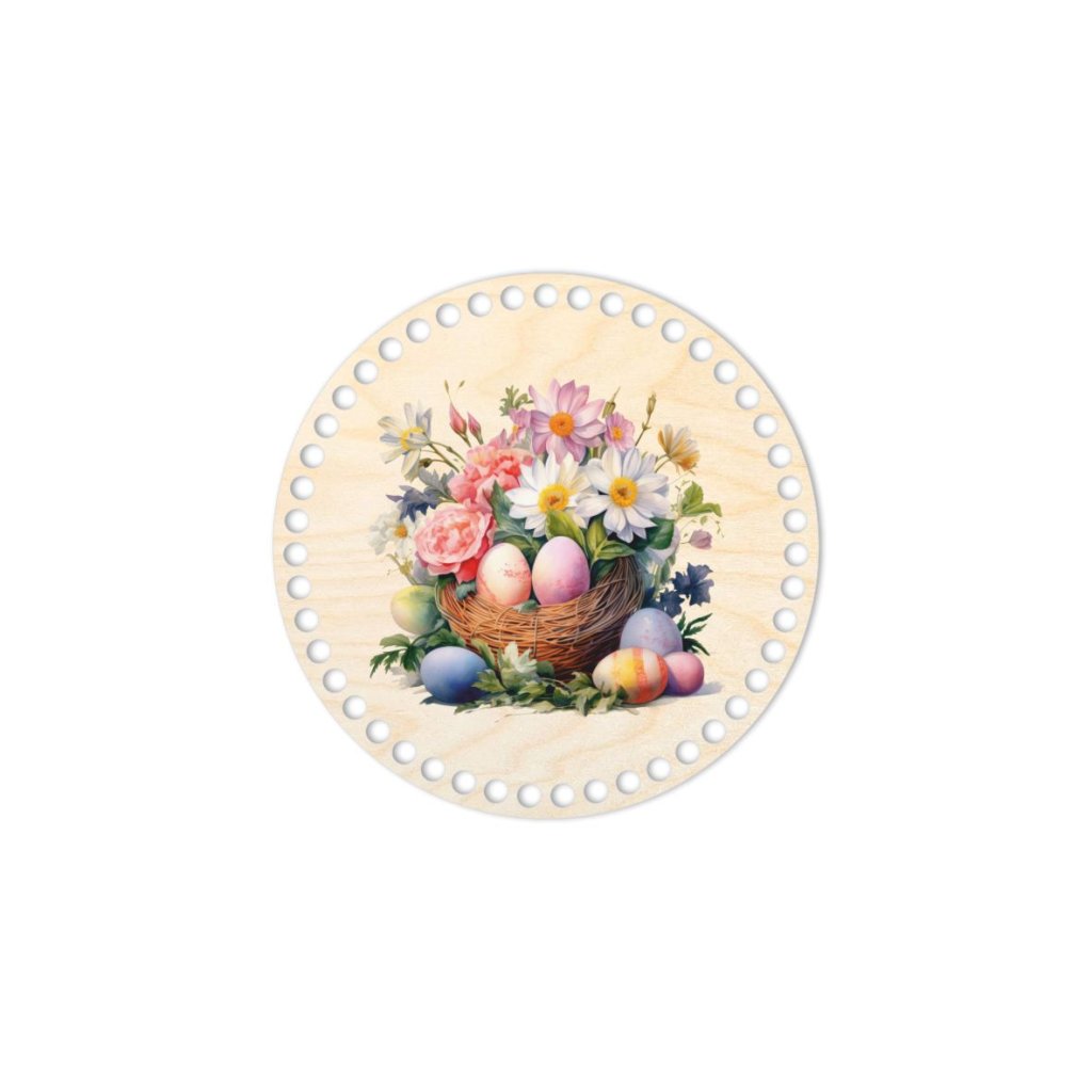 Holzboden, Deckel, Ø 20 cm, Osterei im Korb