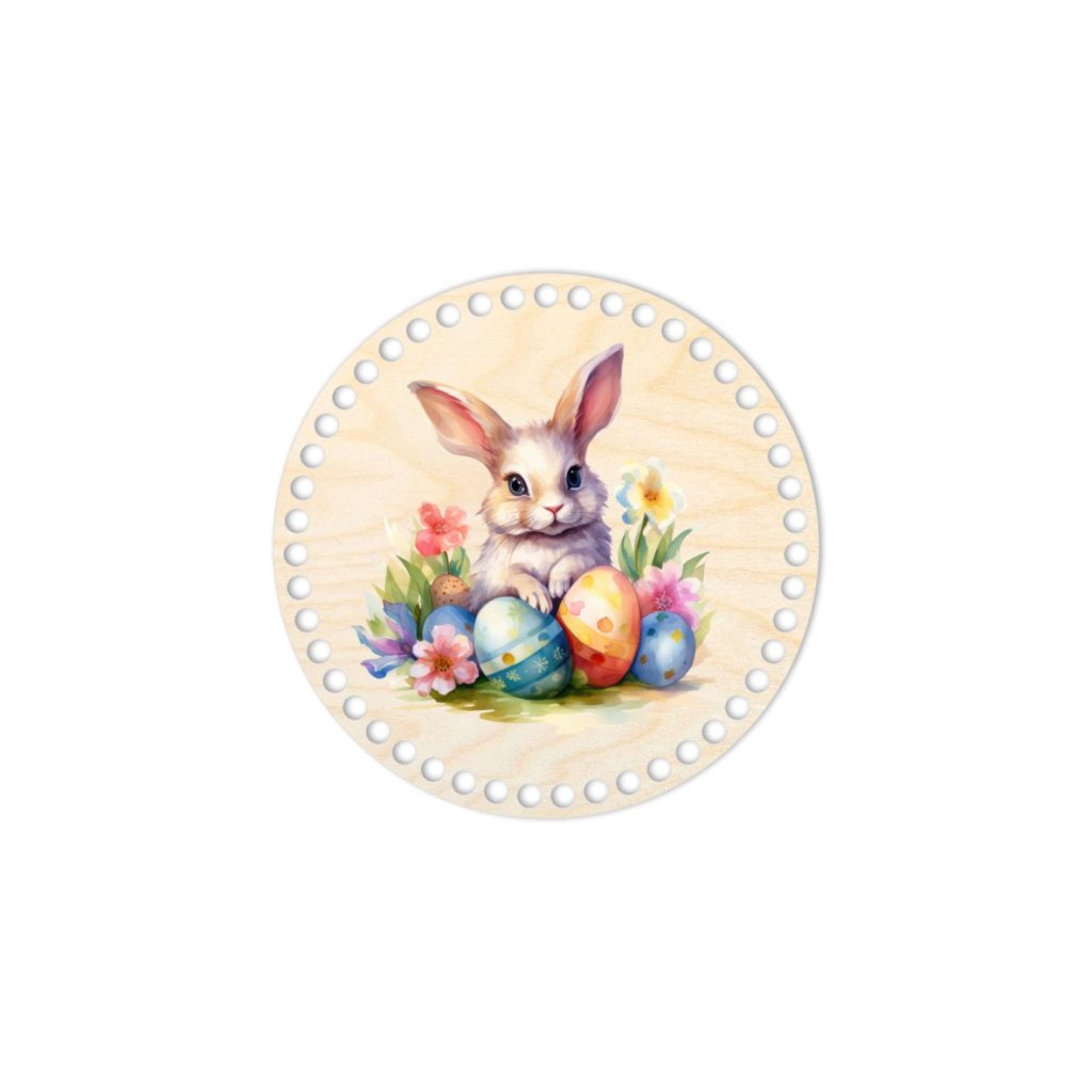 Holzboden, Deckel, Ø 20 cm, Osterhase und Ei, Nr.1