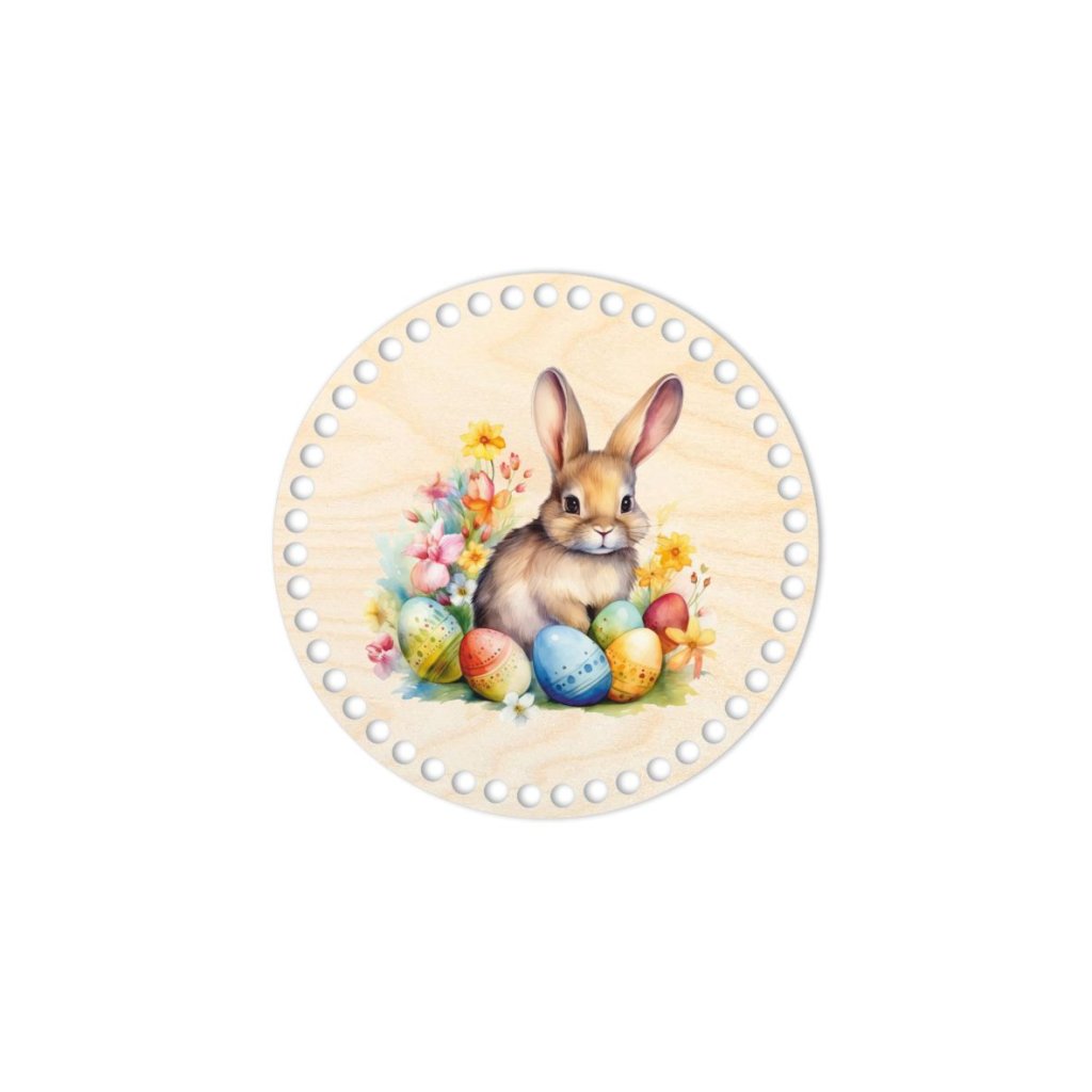 Dieser runde Birken-Sperrholz-Ausschnitt ist die ideale Wahl für Häkelliebhaber, die Häkelkörbe mit einem authentischen, natürlichen Look kreieren möchten. Mit einem Durchmesser von 20 cm und einer Materialstärke von 3 mm bietet er eine solide Basis für Ihre handgefertigten Häkelkörbe. Seine Oberfläche ist mit einem schönen Osterhasenmotiv mit sechs Eiern verziert, das im UV-Druckverfahren aufgebracht wird und so für lang anhaltende Farbe und Lichtechtheit sorgt. Diese Druckmethode sorgt dafür, dass das Motiv auch bei häufigem Gebrauch lebendig und sauber bleibt.