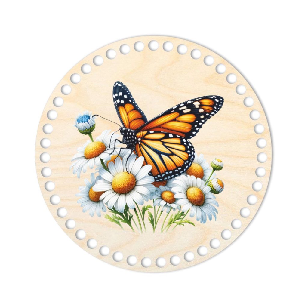 Holzboden, Deckel, Ø 20 cm, Schmetterling und Gänseblümchen