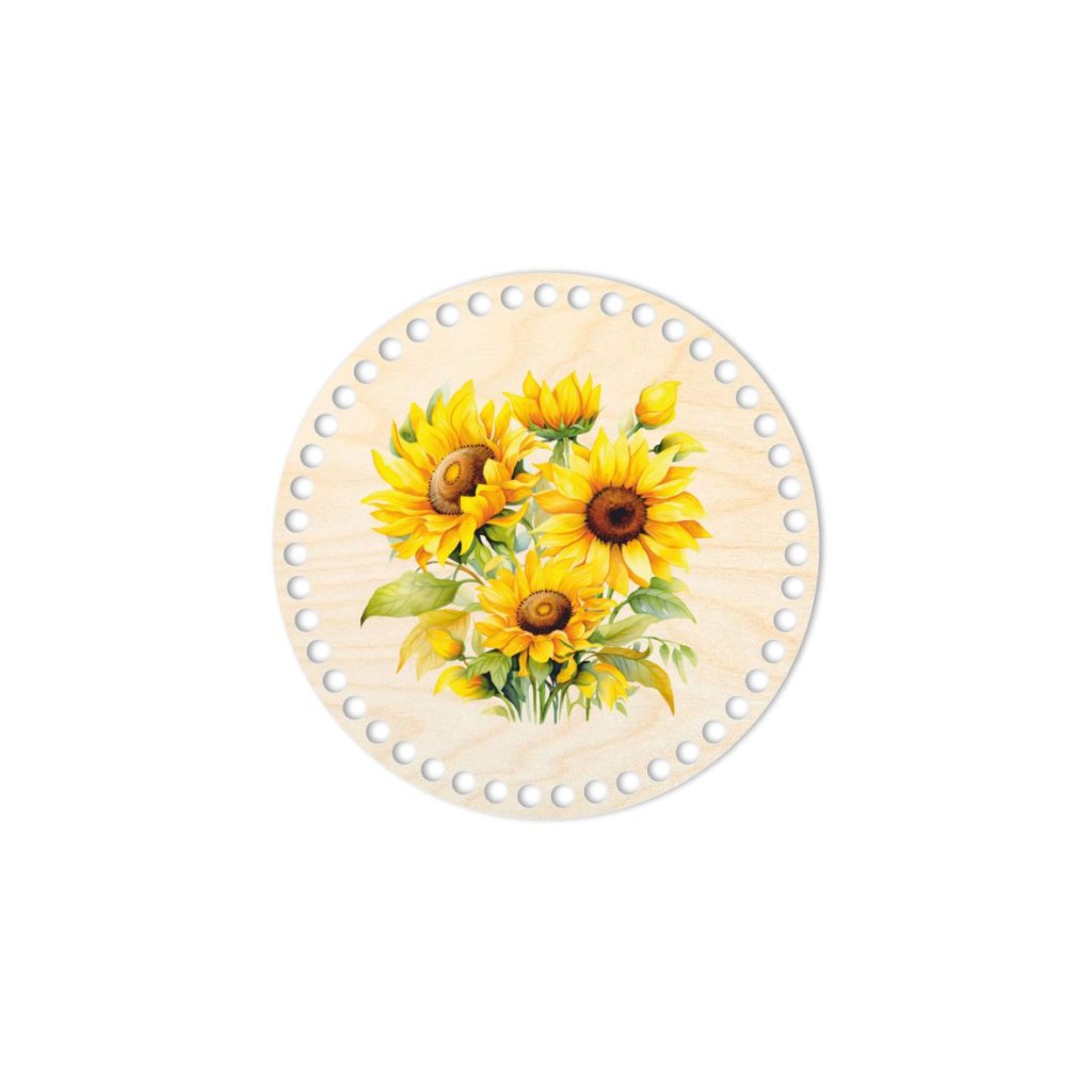 Dieser runde Holzboden aus Birken-Sperrholz mit Sonnenblumenmotiv und einem Durchmesser von 20 cm ist nicht nur eine solide Basis für Häkelkörbe, sondern kann auch als stilvoller Holzdeckel verwendet werden.
