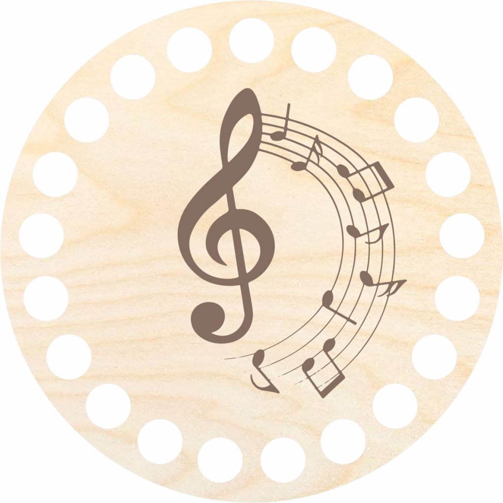 Dieser runde Holzboden aus Birken-Sperrholz mit Notenmotiv und einem Geigenschlüssel mit 10 cm Durchmesser ist nicht nur ein solider Holzboden für gehäkelte Untersetzer, sondern kann auch als stilvoller Boden oder Holzdeckel verwendet werden.