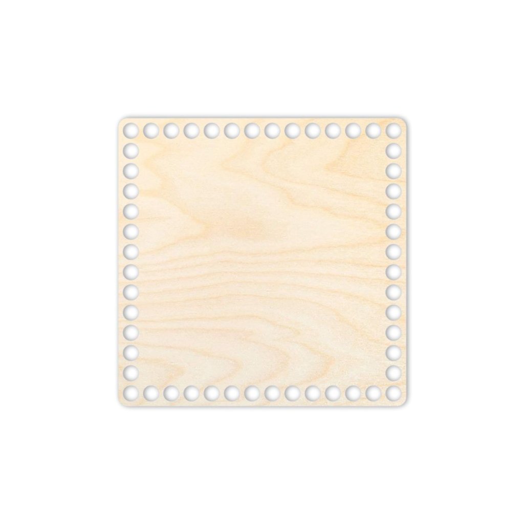 Quadratischer Holzboden/Deckel (25 × 25 cm) aus 3 mm Birken-Sperrholz, passend für 9 mm dickes Garn (JUMBO). Stabile Basis für große Häkelprojekte.