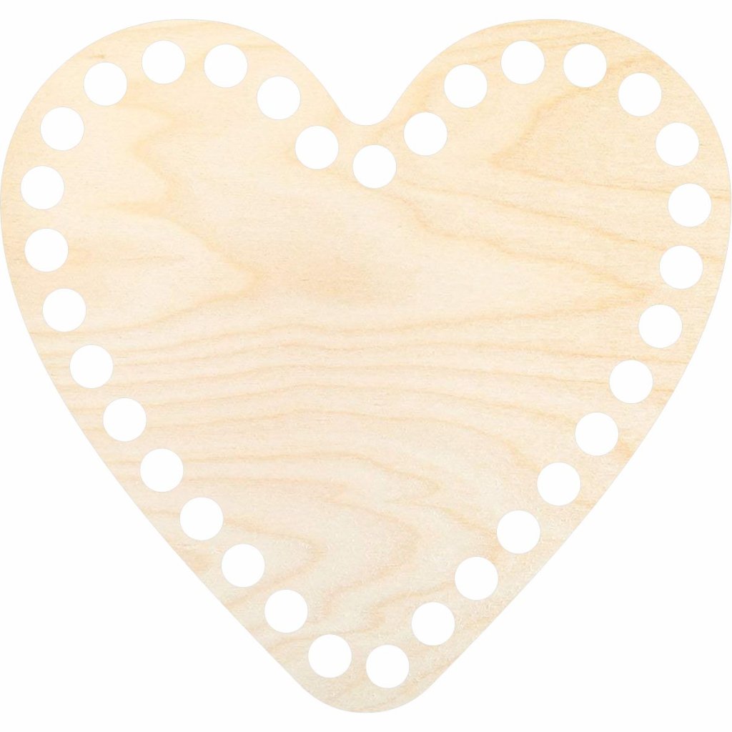 Herzförmiger Holzboden aus 3 mm starkem Birken-Sperrholz, geeignet für die Herstellung von Häkelkörben aus Textilgarn oder Kordelgarn. Die gefertigten Häkelkörbe können als Dekoration oder als Stauraum verwendet werden.