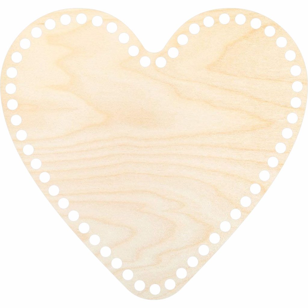 Herzförmiger Holzboden aus 3 mm starkem Birken-Sperrholz, geeignet für die Herstellung von Häkelkörben aus Textilgarn oder Kordelgarn. Die gefertigten Häkelkörbe können als Dekoration oder als Stauraum verwendet werden.
