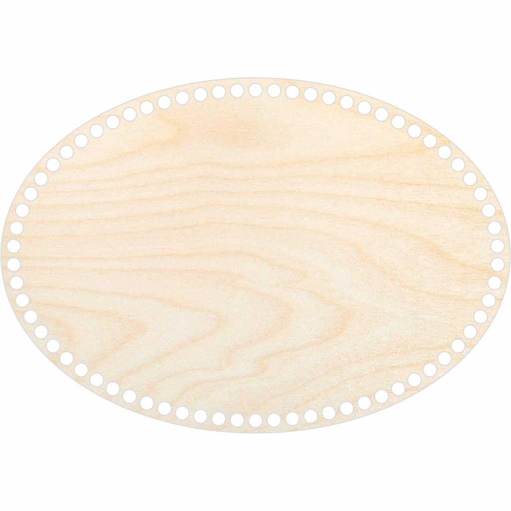 Holzboden Oval x 23 cm, aus 3 mm starkem Birken-Sperrholz, geeignet für die Herstellung von Häkelkörben aus Textilgarn oder Kordelgarn. Die gefertigten Häkelkörbe können als Dekoration oder Aufbewahrungsort verwendet werden.