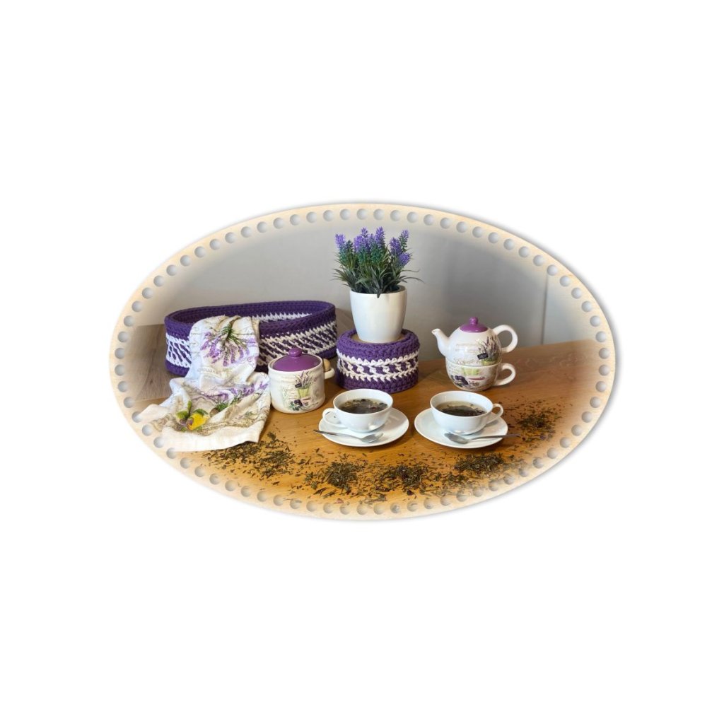 Holzboden/Deckel - oval 40x25 cm, Lavendeltee