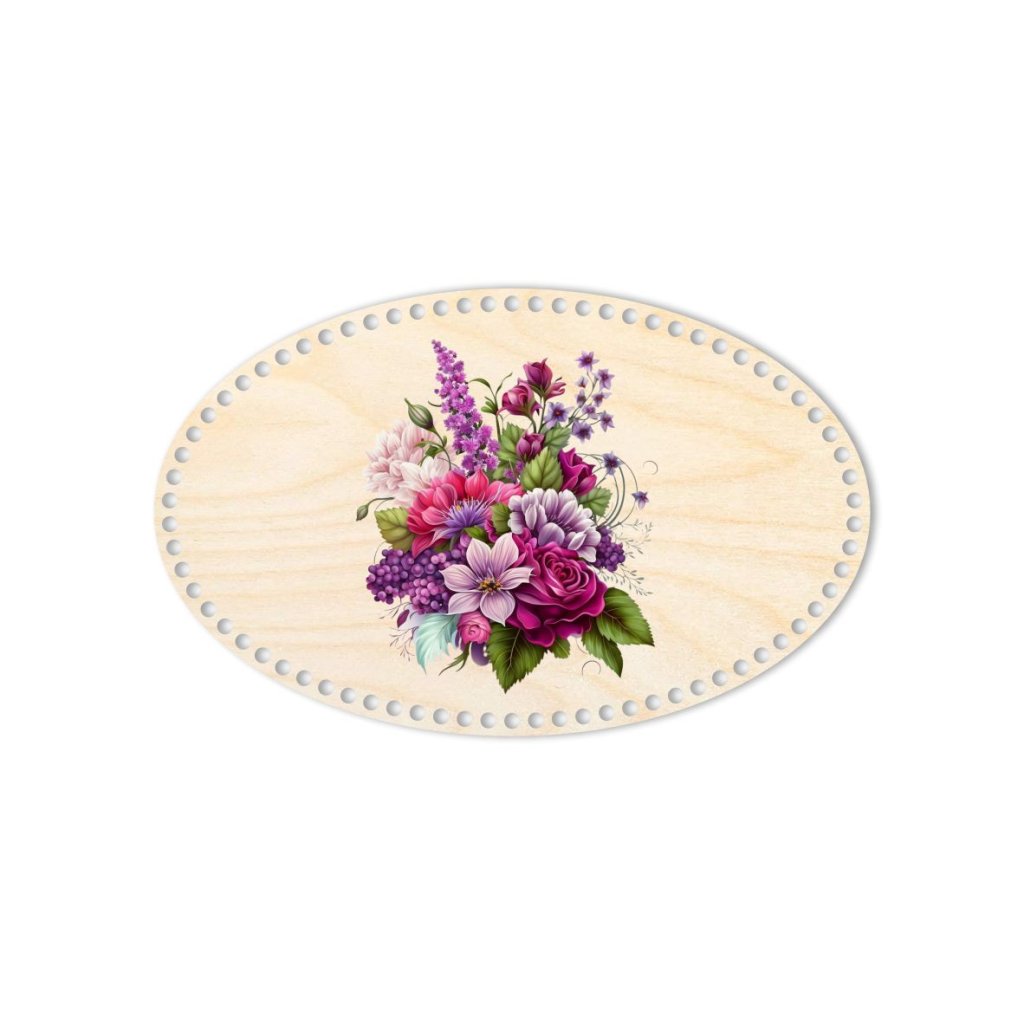 Holzboden/Deckel - oval 40x25 cm, Lila Blumen