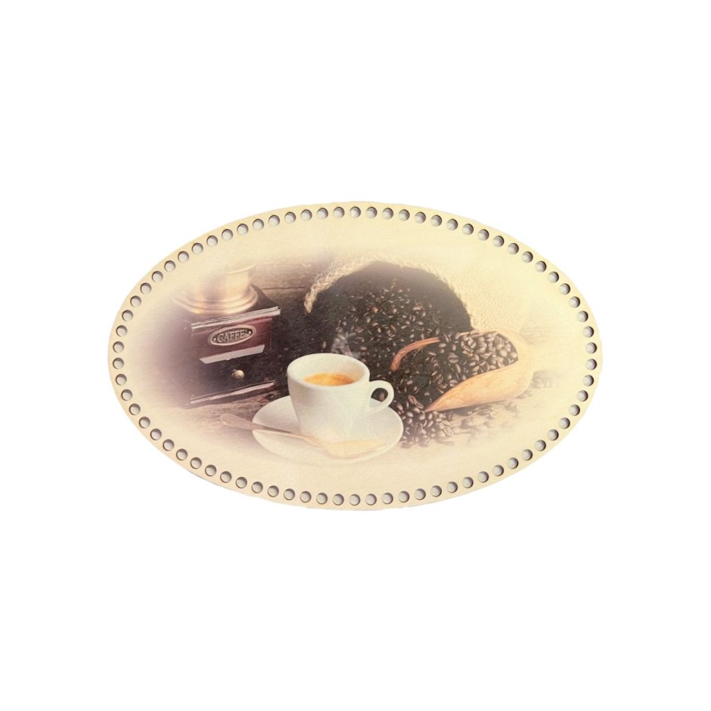 Holzboden/Deckel - oval 40x25 cm, Motiv Kaffee