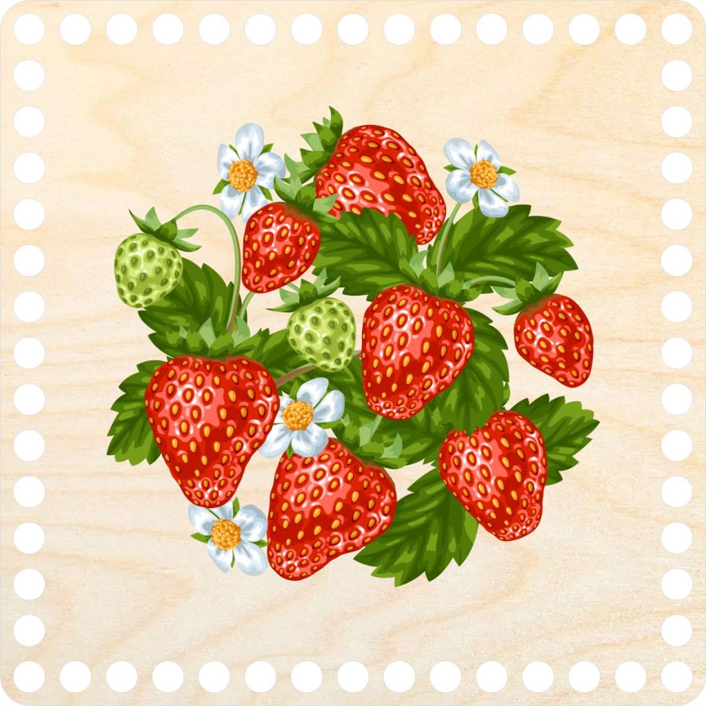 Holzboden/Deckel - quadratisch 20x20 cm, Erdbeeren