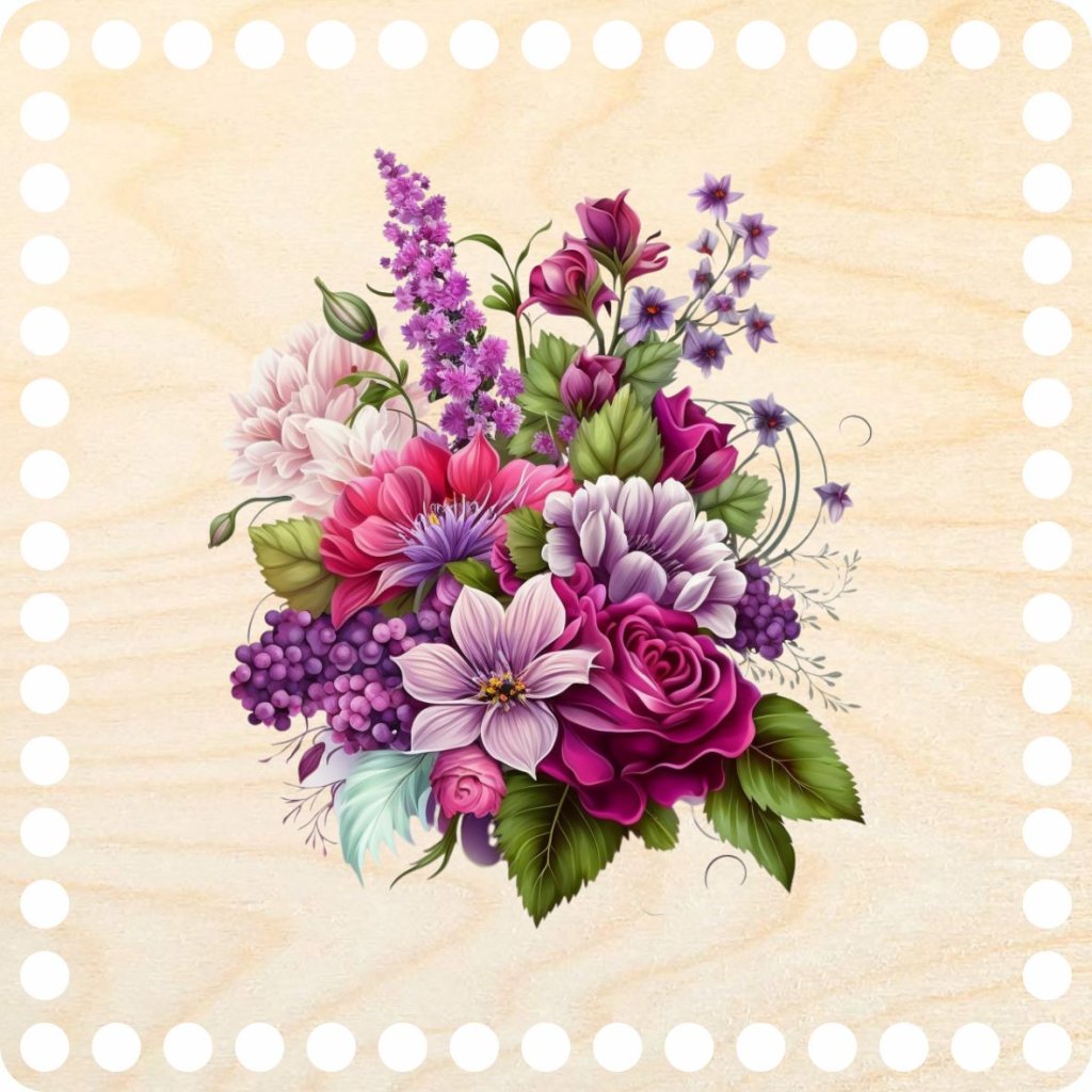 Holzboden/Deckel - quadratisch 20x20 cm, Lila Blumen