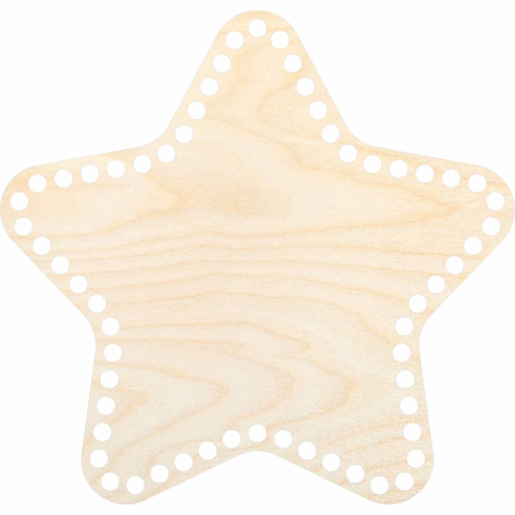 Sternförmiger Holzboden aus 3 mm ovalem Birken-Sperrholz, geeignet für die Herstellung von Häkelkörben aus Textilgarn oder Kordelgarn. Die gefertigten Häkelkörbe können als Dekoration oder als Stauraum verwendet werden.