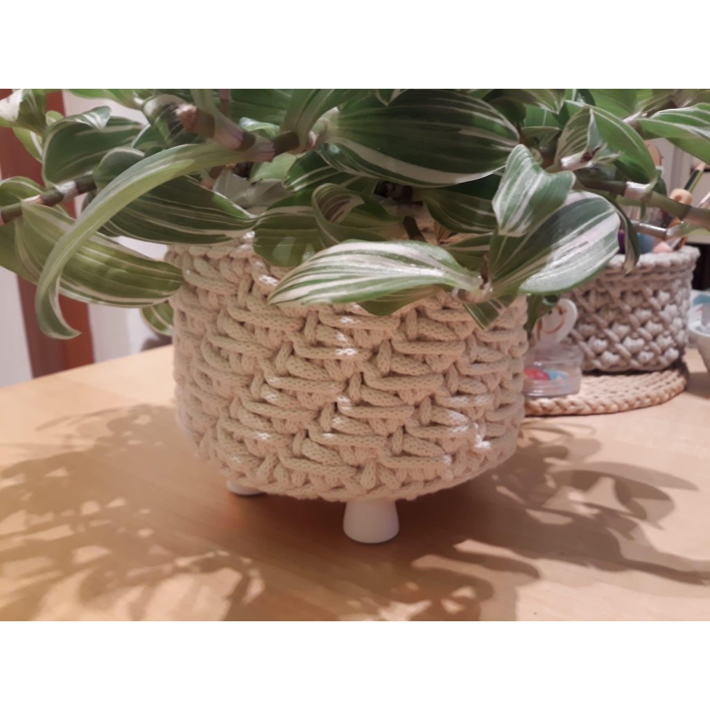 Der Holzboden mit Holzfüßenkann als erhöhter Korb oder als eleganter Topfständer verwendet werden. Die Füße sind lackiert, damit sie Ihre Möbel oder Ihren Boden nicht zerkratzen. Die verwendeten Schrauben haben einen leicht abgerundeten Kopf, damit sie sich nicht versehentlich im Garn verfangen und den Inhalt des Häkelkorbs beschädigen.
