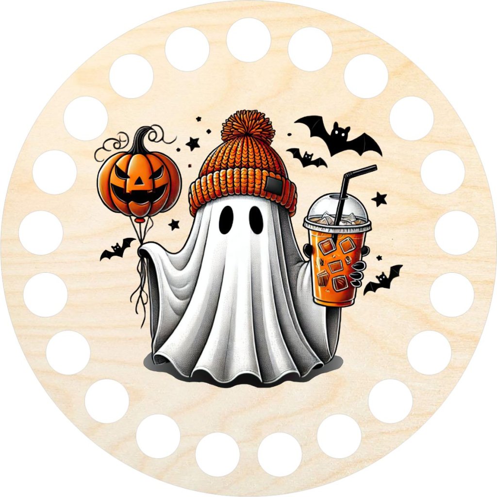 Holzboden zum Häkeln, Ø 10 cm, Geist mit Kaffee
