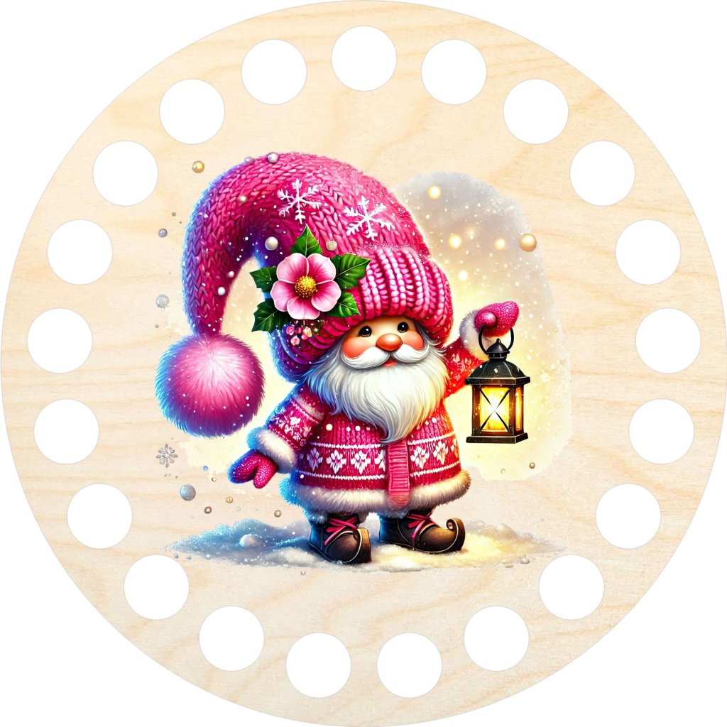 Holzboden zum Häkeln, Ø 10 cm, Zwerg mit Laterne