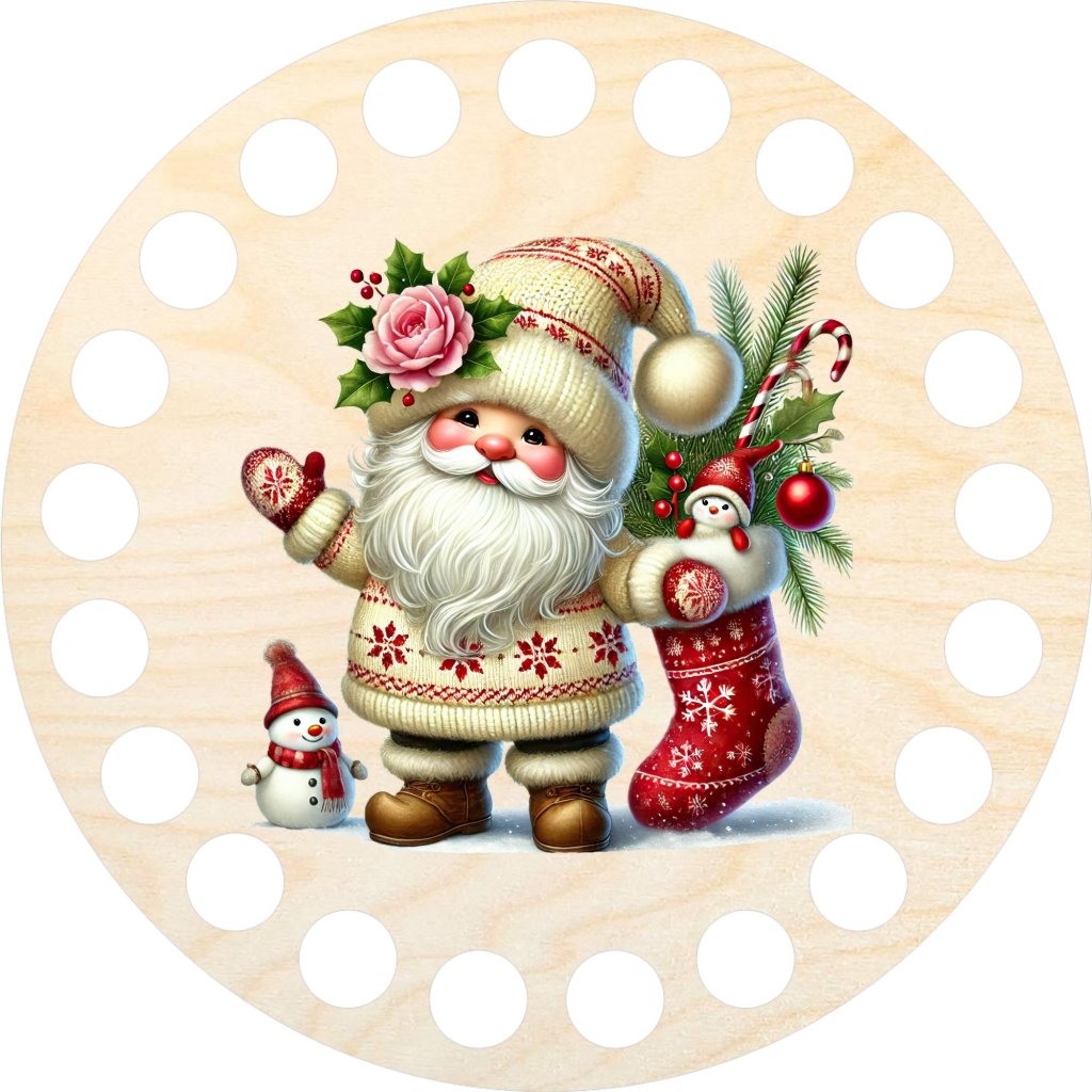 Holzboden zum Häkeln, Ø 10 cm, Zwerg mit Strumpf