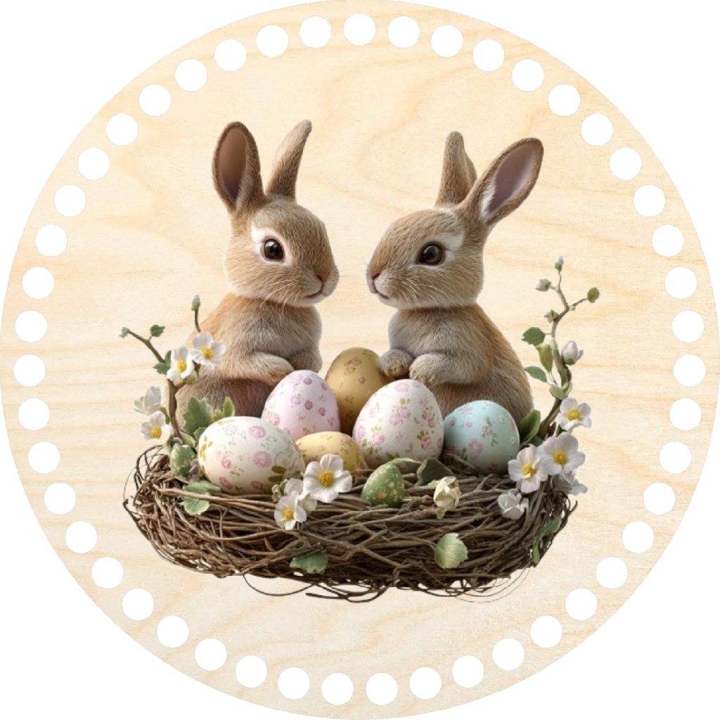 Holzboden zum Häkeln oder Holzdeckel - Zwei Kaninchen