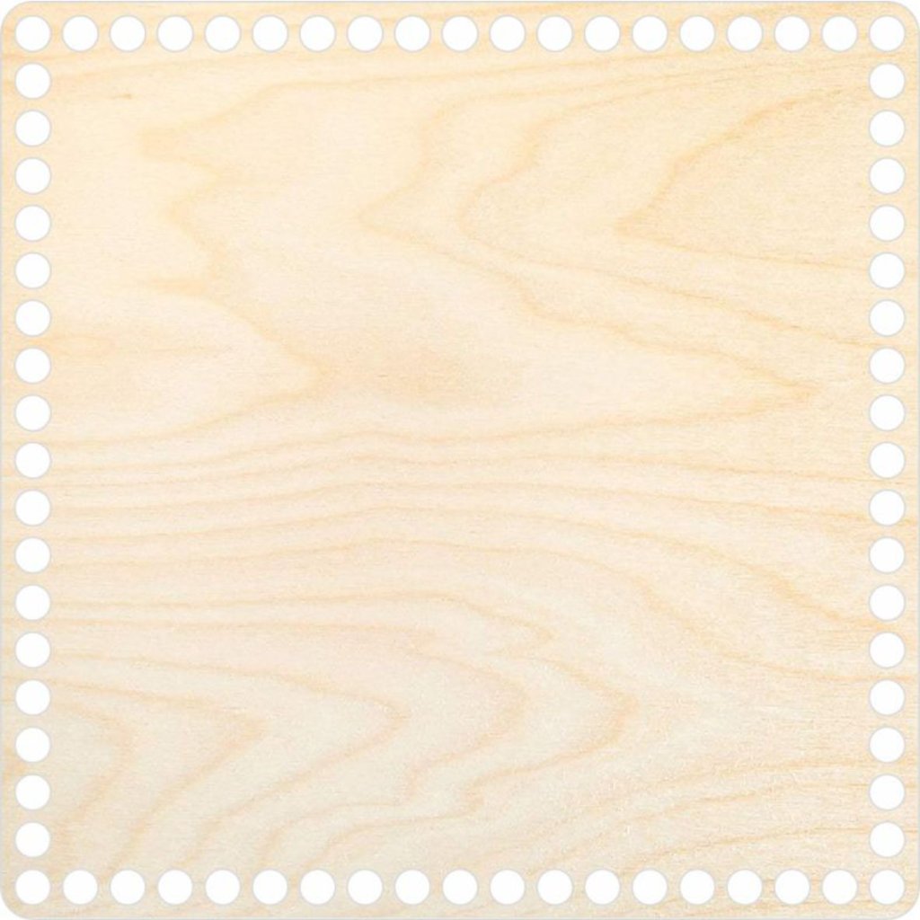 Quadratischer Holzboden (23 × 23 cm) aus 3 mm Birken-Sperrholz. Stabile Basis für kreative Häkelprojekte, naturbelassen und langlebig.