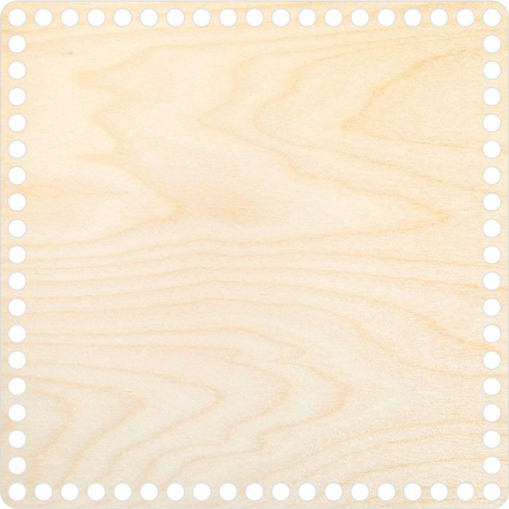 Quadratischer Holzboden (25 × 25 cm) aus 3 mm Birken-Sperrholz. Eignet sich für Körbchen in verschiedenen Größen; einfach zu verarbeiten.