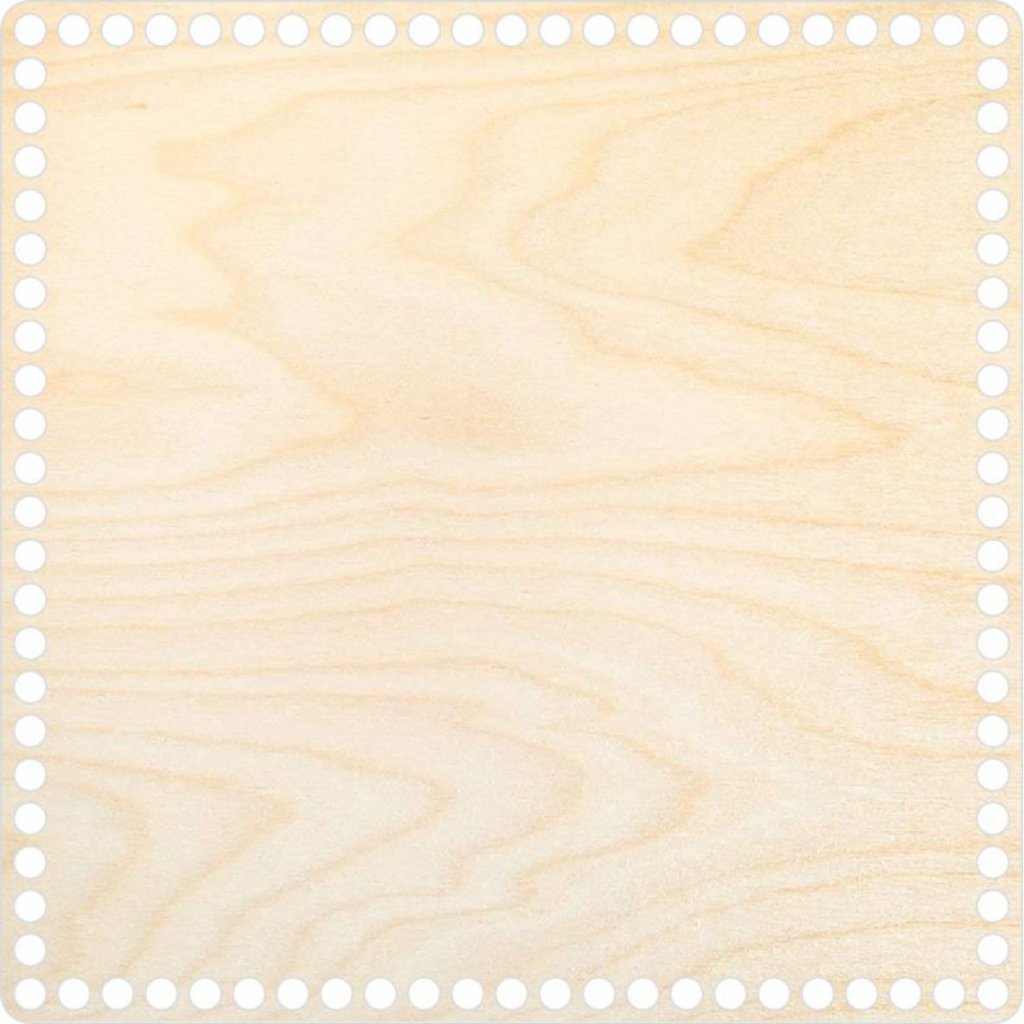 Quadratischer Holzboden (28 × 28 cm) aus 3 mm Birken-Sperrholz. Robuste und dekorative Grundlage für gehäkelte Körbchen.