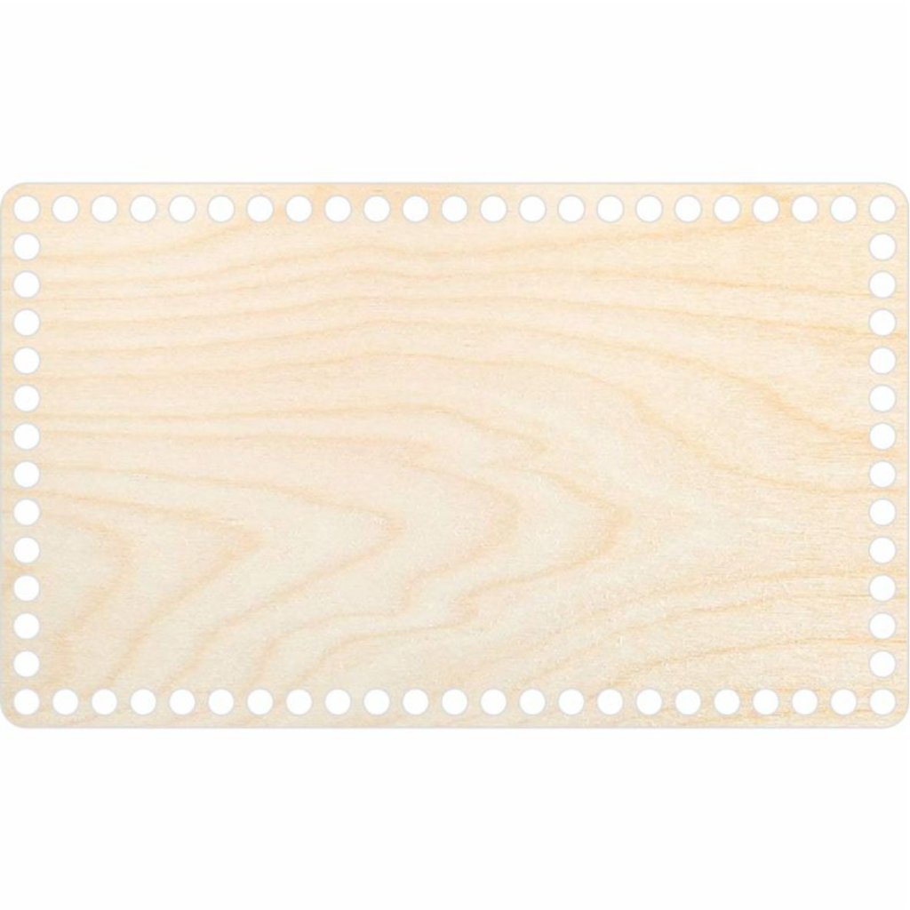 Holzboden von 30 x 18 cm, aus 3 mm starkem Birken-Sperrholz, geeignet für die Herstellung von Häkelkörben aus Textilgarn oder Kordelgarn. Die gefertigten Häkelkörbe können als Dekoration oder Aufbewahrungsort verwendet werden.