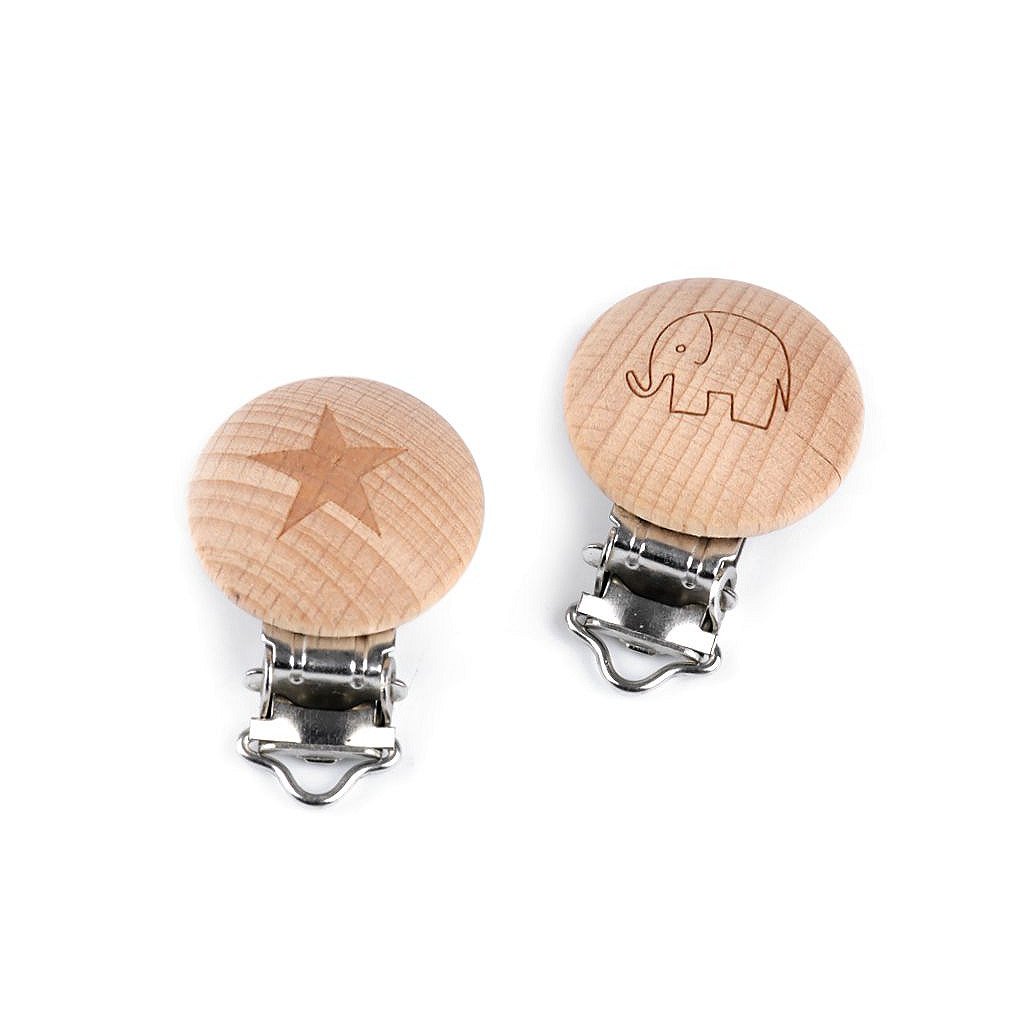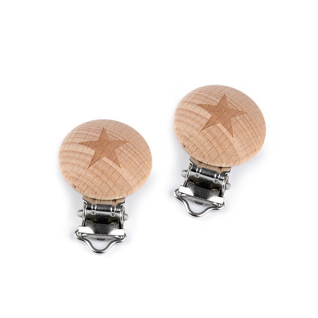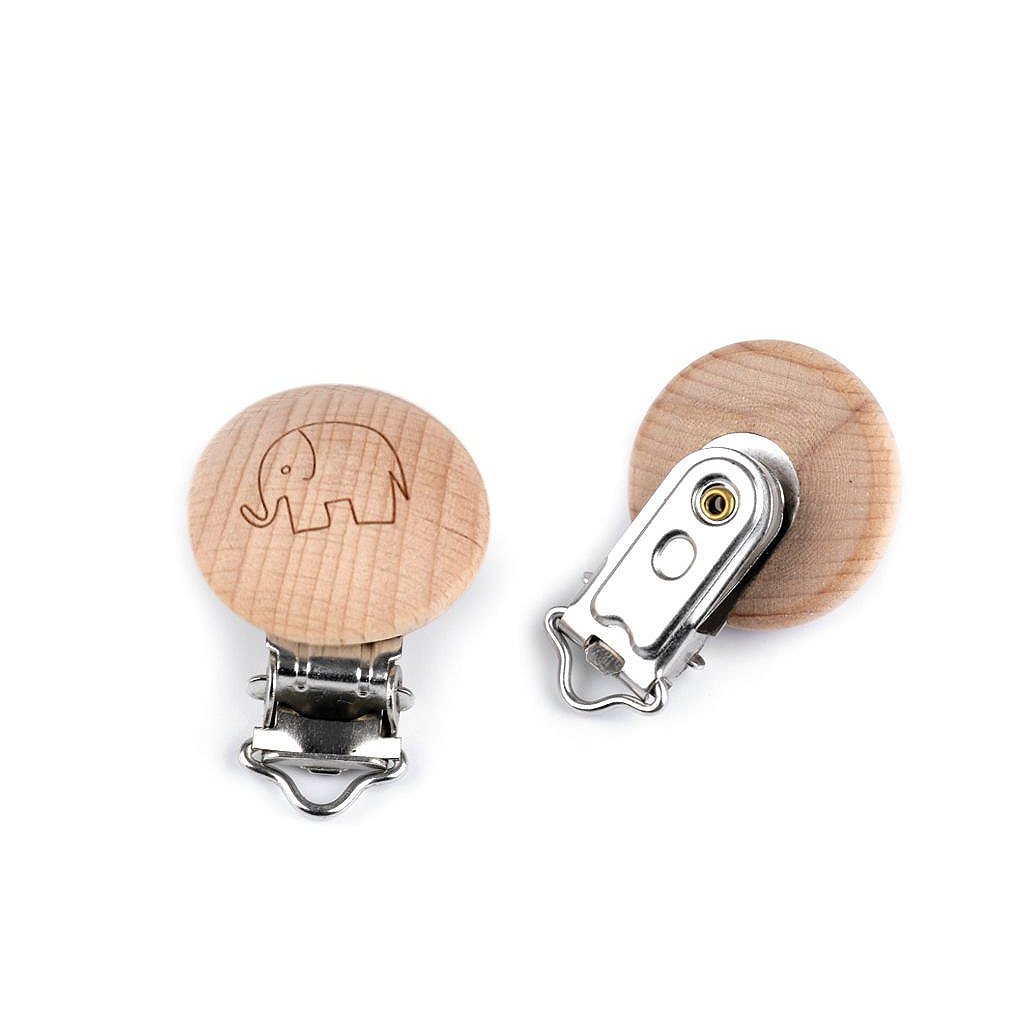 Metallclip mit Holzverkleidung eignet sich für Namensschilder, wenn Sie ein Band oder eine Schnur durch das Etikett fädeln. Die Zähne im Inneren verhindern ein Verrutschen. Der Durchmesser der Verzierung beträgt 30 mm.