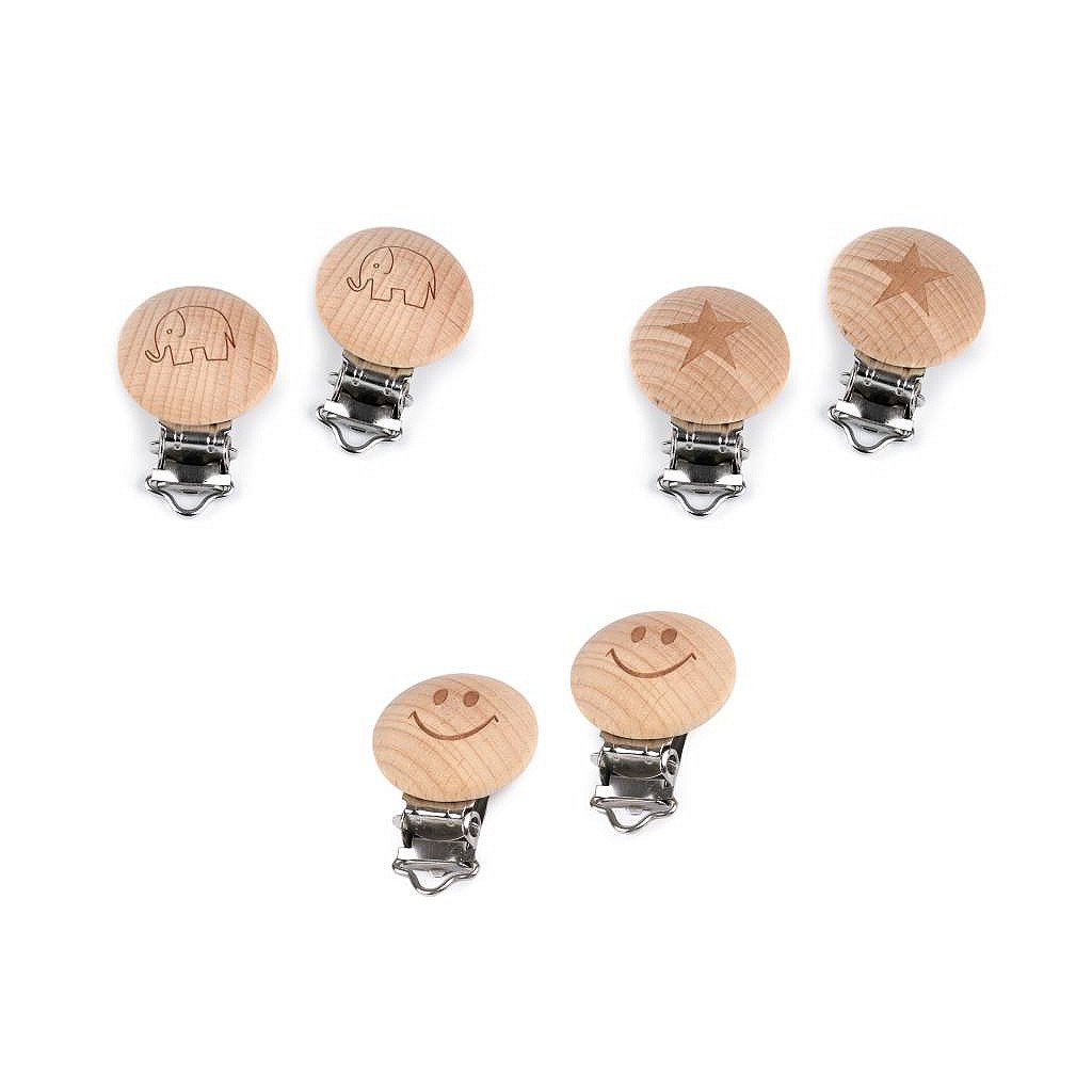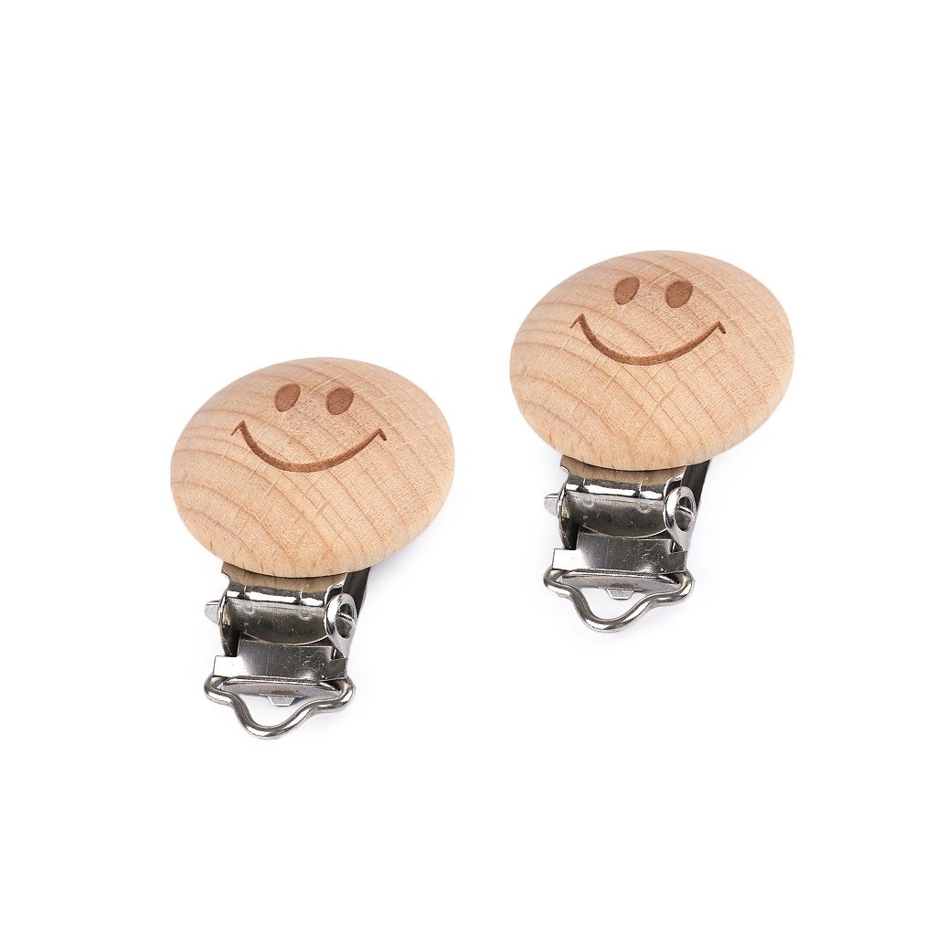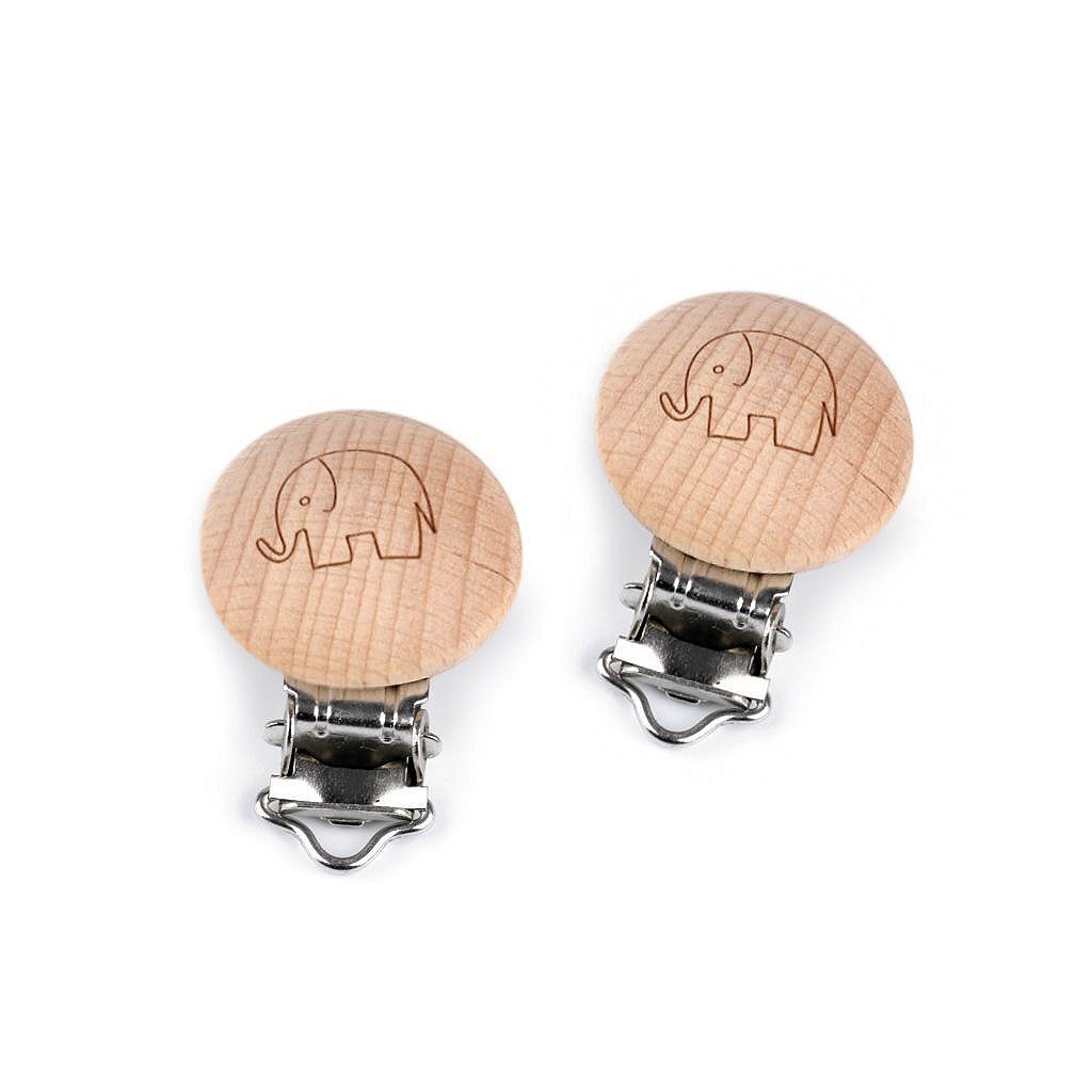 Metallclip mit Holzverkleidung eignet sich für Namensschilder, wenn Sie ein Band oder eine Schnur durch das Etikett fädeln. Die Zähne im Inneren verhindern ein Verrutschen. Der Durchmesser der Verzierung beträgt 30 mm.