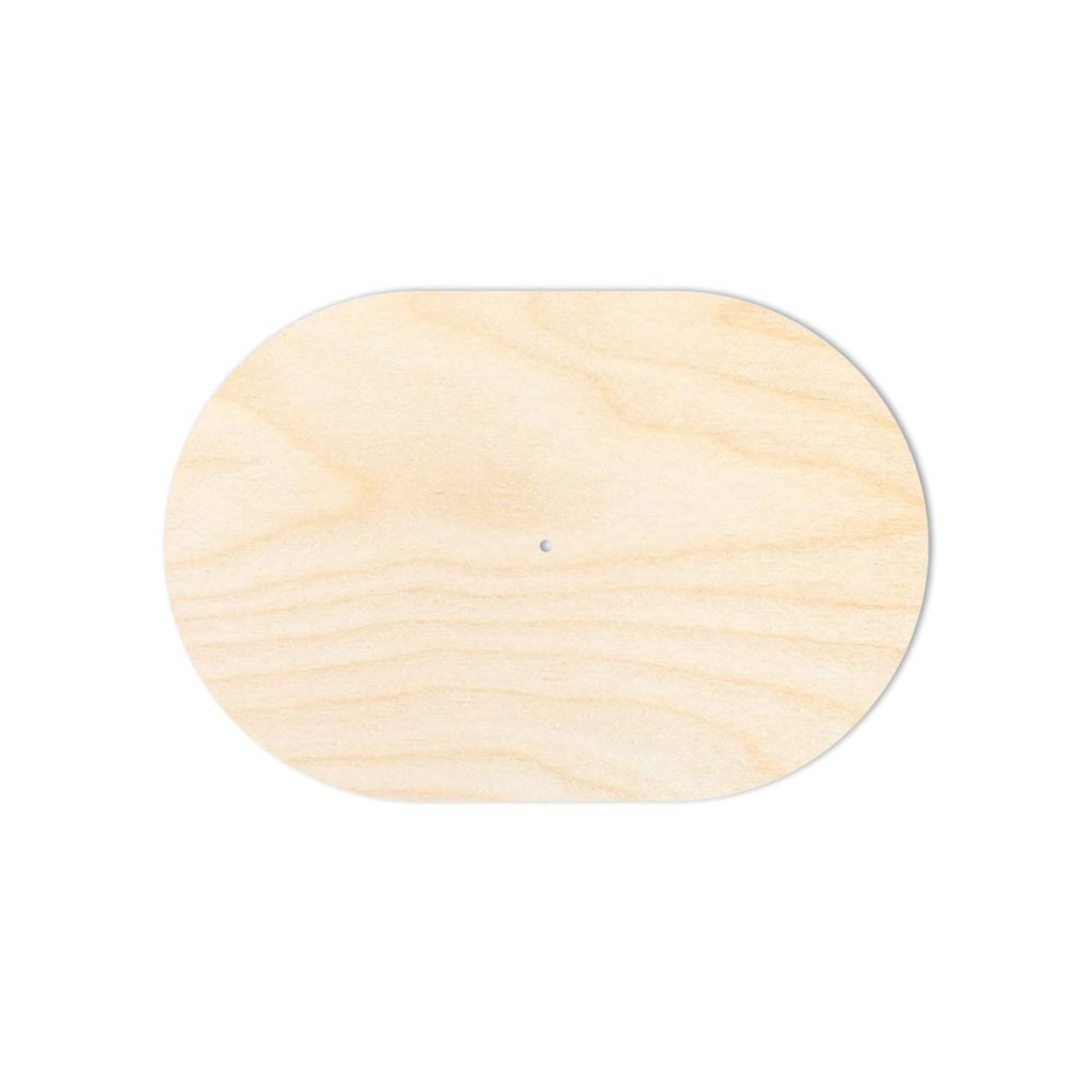 Holzdeckel mit einem 5 mm Loch für einen Holzknopf oder eine Garnöse für ein ovales Häkelkörbchen von 30 x 20 cm.