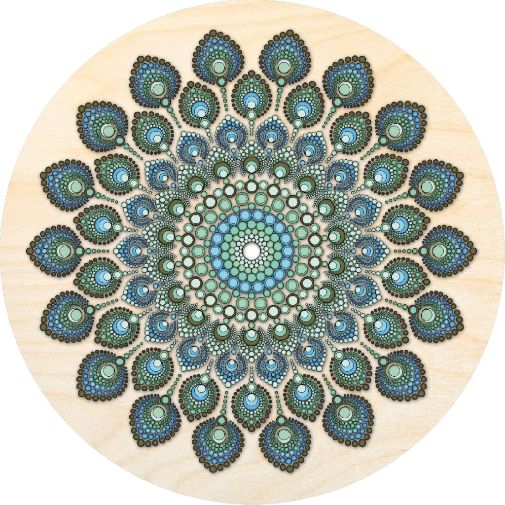 Holzdeckel mit Loch - Ø 15 cm, grünes Mandala