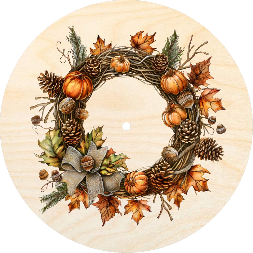 Holzdeckel mit Loch - Ø 15 cm, Herbstkranz