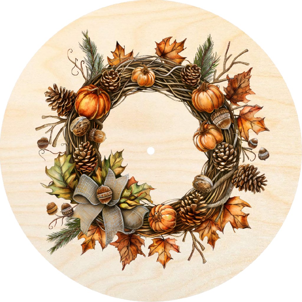 Holzdeckel mit Loch - Ø 20 cm, Herbstkranz